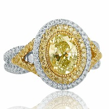 GIA certifie 1,76 CTW OVAL Fancy Green Yellow Cmeleon Diamond Ring 18K Gold