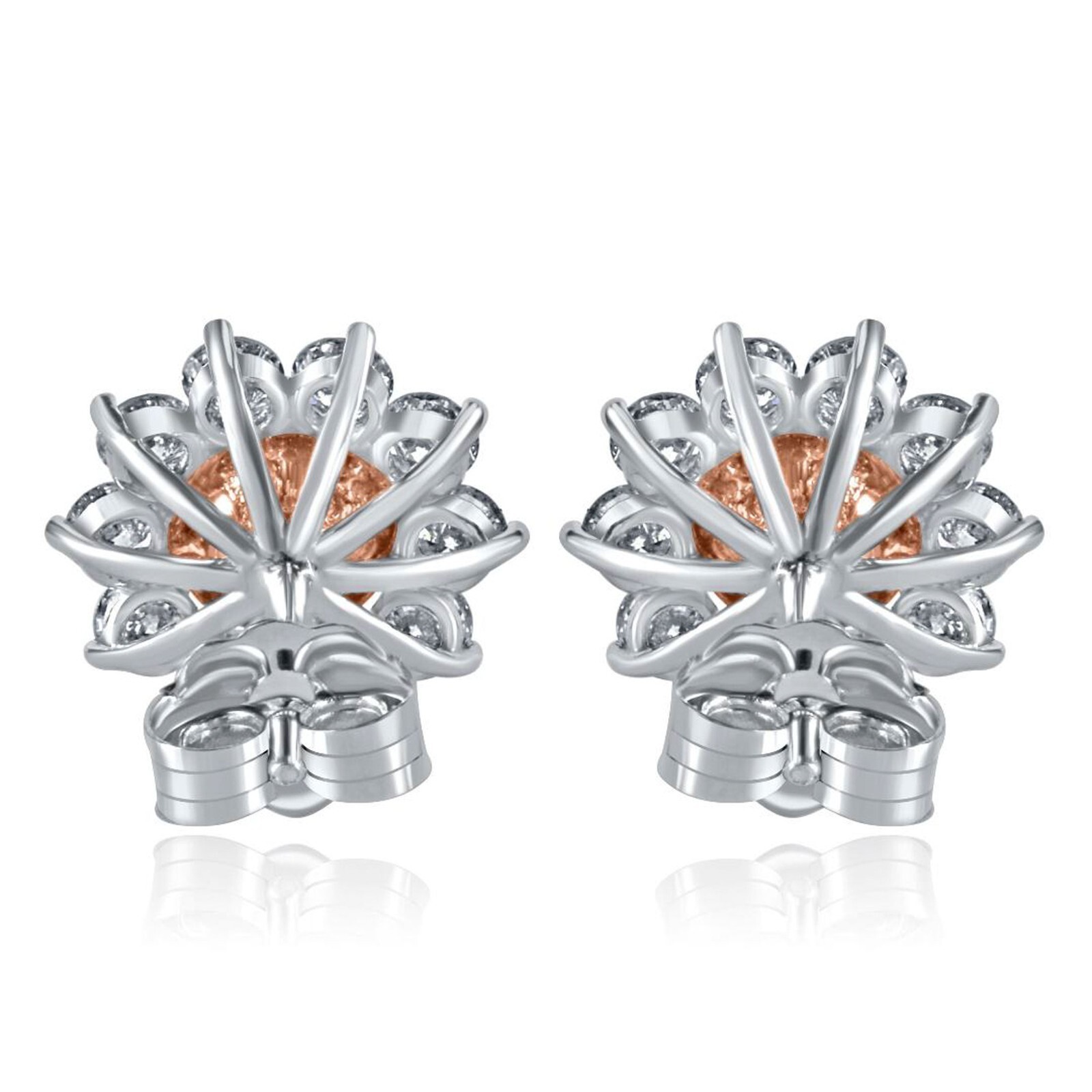 Estos pendientes de par de pares únicos cuentan con piedras centrales de diamantes cultivadas de color rosa vívido de 0.70 quilates, rodeadas de diamantes de diamantes cultivados rodeadas por diamantes de corte brillante y redondos incoloros en el entorno de punta. ¡La combinacion de estas formas agrega un sparkle sofisticado y complementa la piedra central maravillosamente! Hecho a mano en oro blanco de 14k y seguro con el cierre de retroceso. El peso total de quilates es de 1.70 quilates.