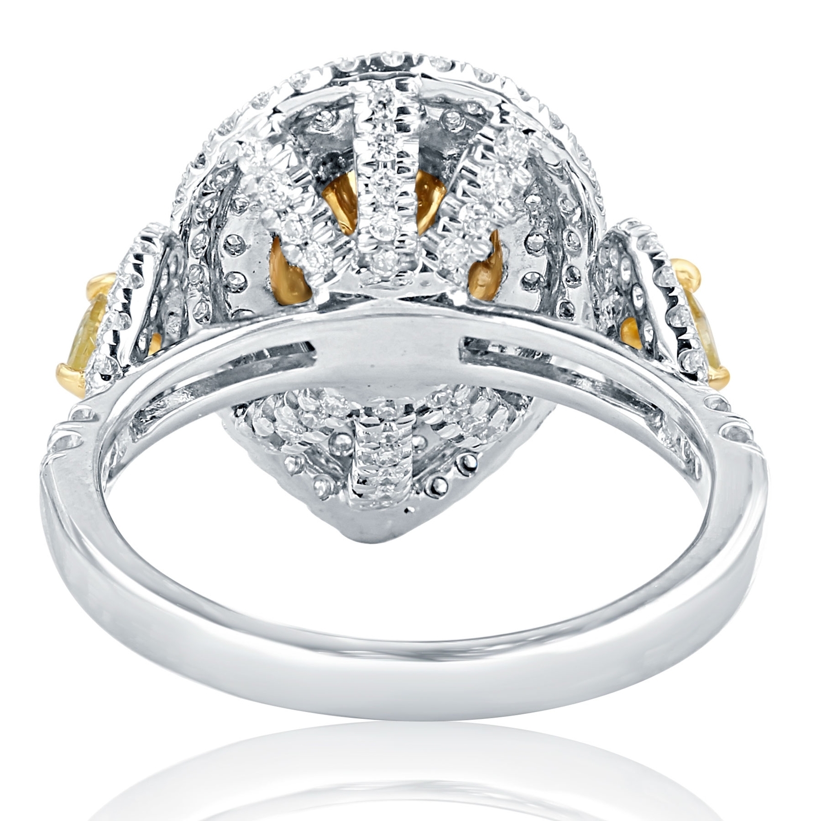 2,29 ct pera naturale debole anello di fidanzamento del diamante giallo alone oro bianco