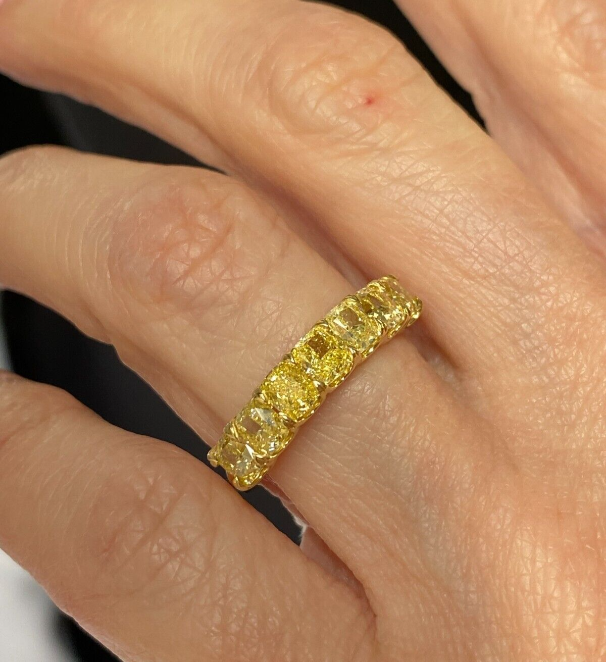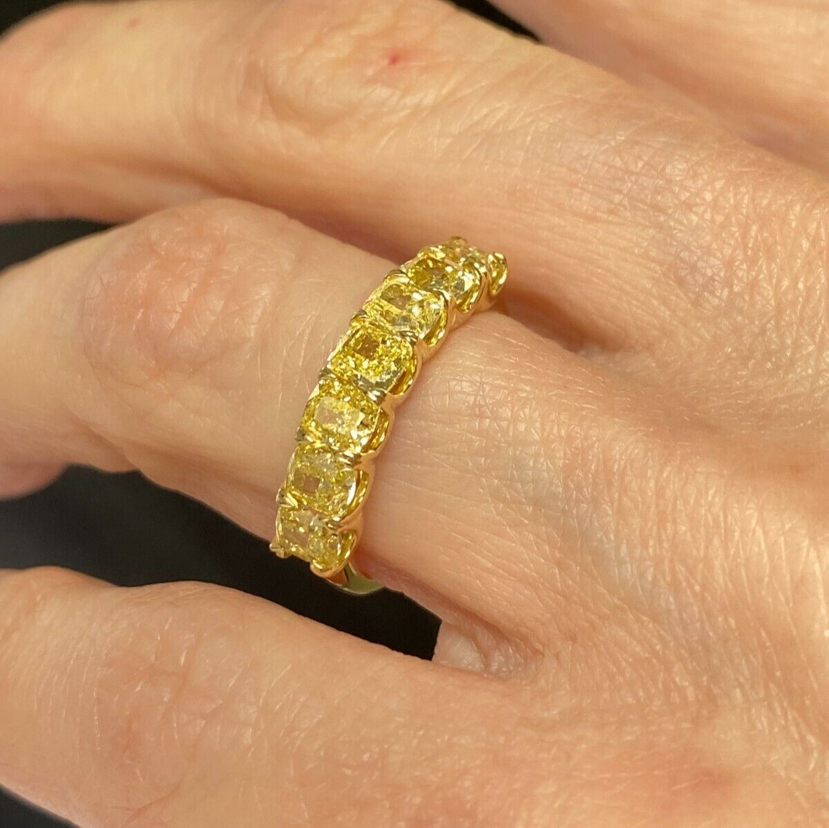 La splendida fede nuziale e dotata di oro giallo 18k con 2,13 carati 7 diamanti tagli al cuscino giallo naturale in cornine a forma di U. E un simbolo del tuo amore ...