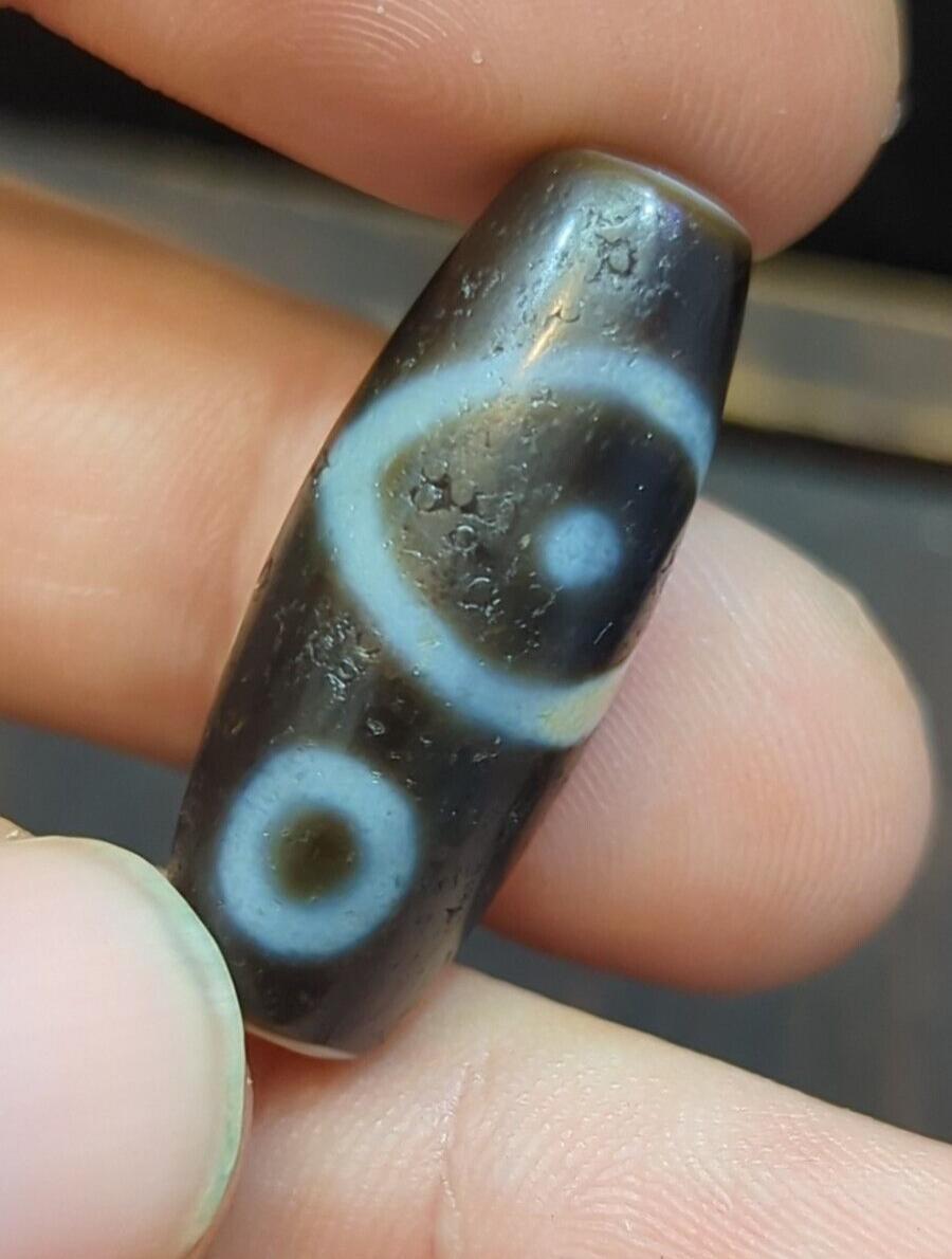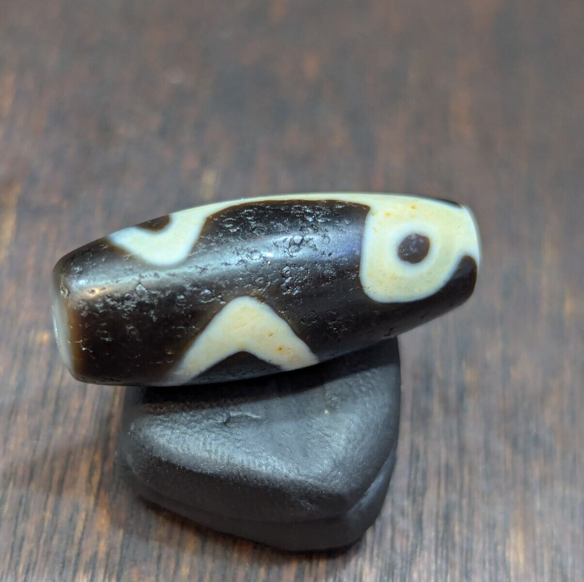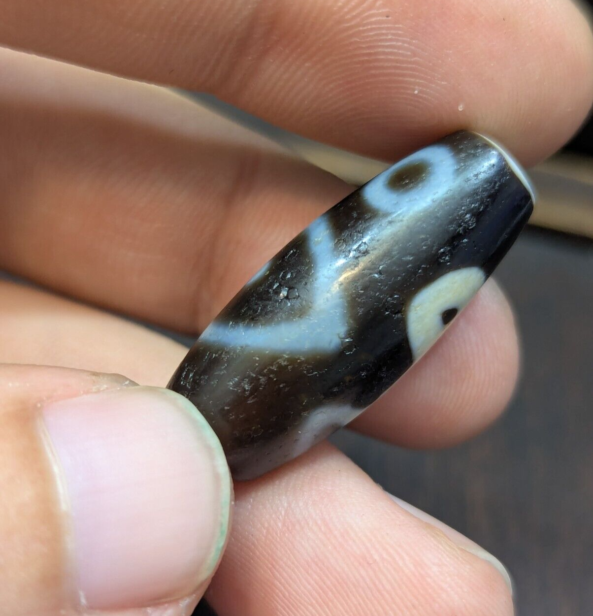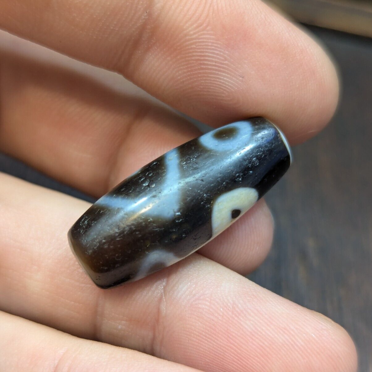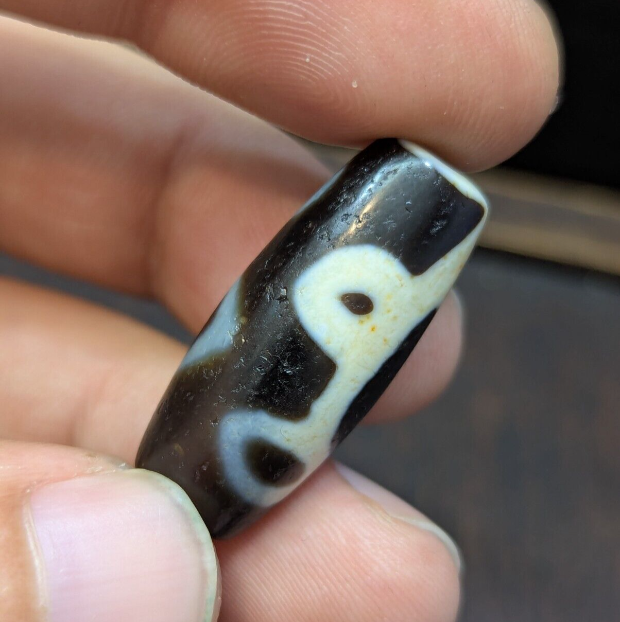RARE trouve une amulette perle Dzi motif très unique 5 yeux pierre d'agate