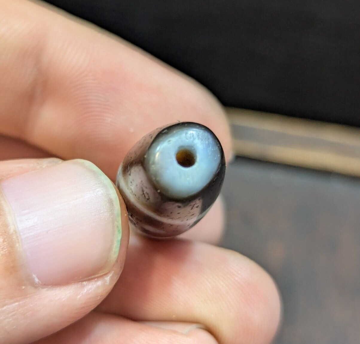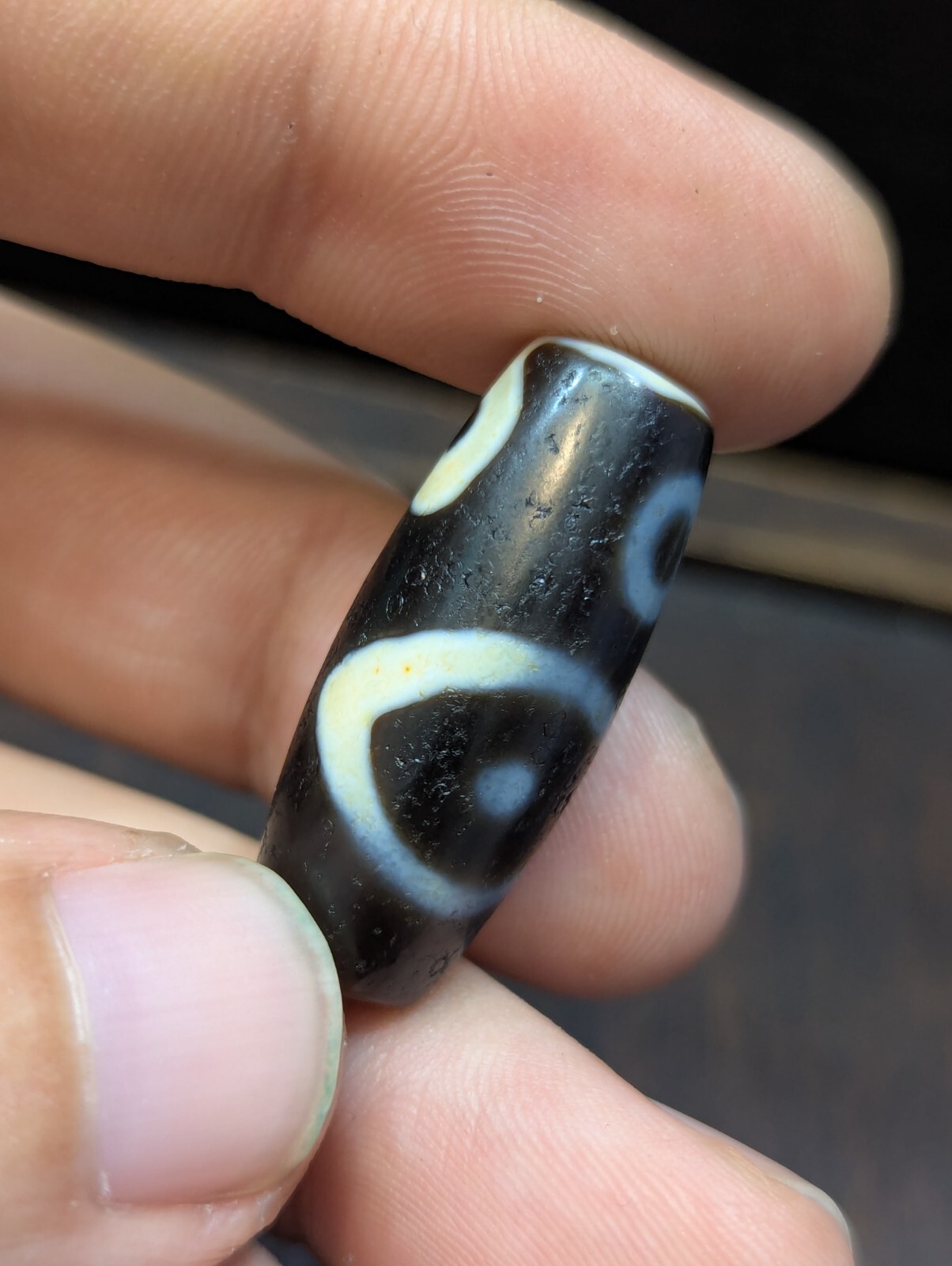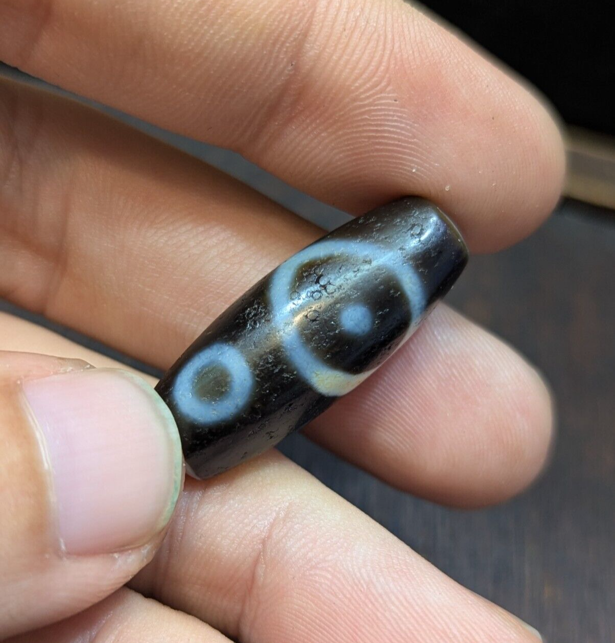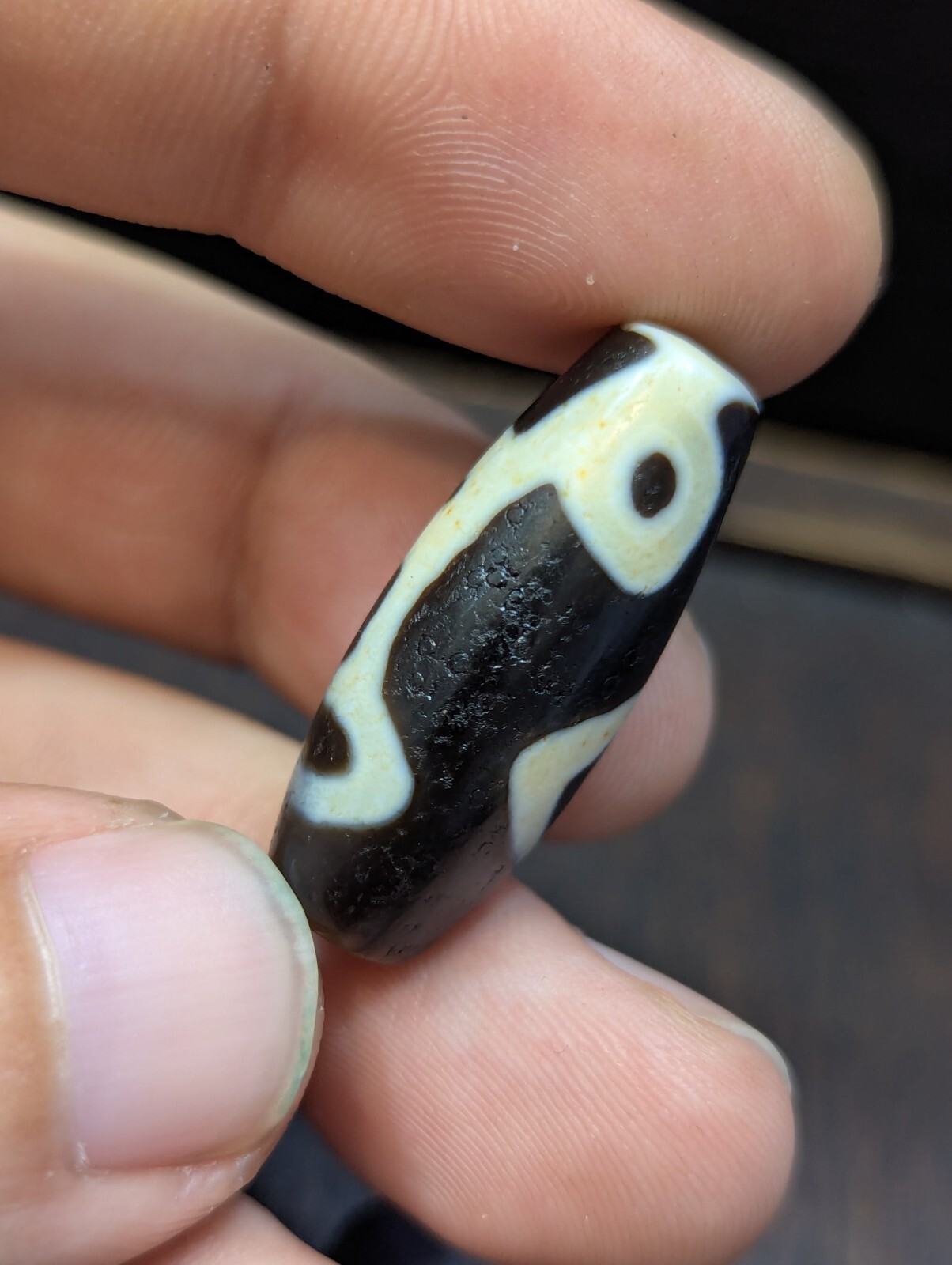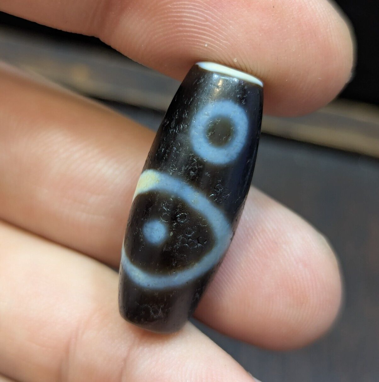 RARE trouve une amulette perle Dzi motif très unique 5 yeux pierre d'agate