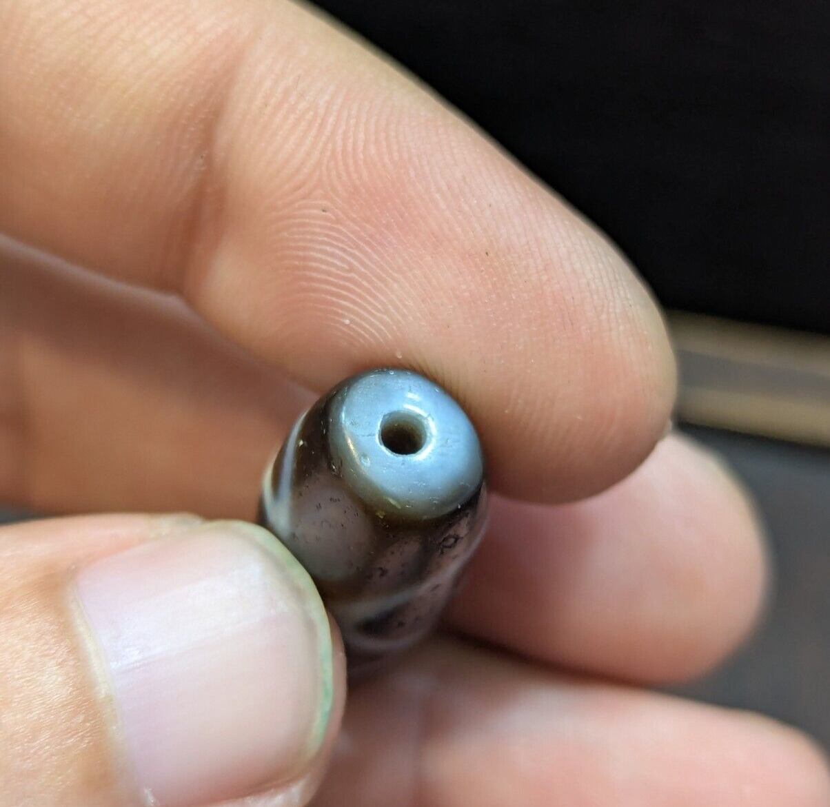 Ancienne amulette de perles Dzi en pierre d'agate indo tibetaine lignes oculaires