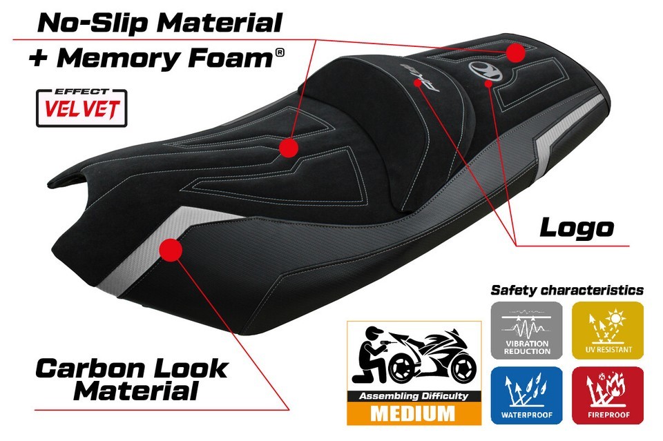 Tappezzeria Italia est fierement le seul innovateur de ce systeme revolutionnaire a l'echelle mondiale. Avec nos couvertures de siege de confort, vous profitez non seulement d'un design frais et elegant, mais aussi un confort exceptionnel. Ceci est rendu possible par la mousse a memoire dans le couvercle, qui transforme votre siege de moto en une selle de "systeme de confort" a part entiere.