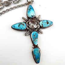 Großes Herren Christliches Kreuz Arizona Türkis Anhänger Kette Halskette...