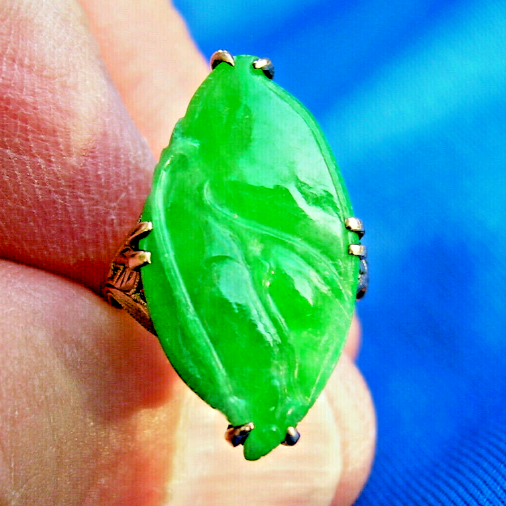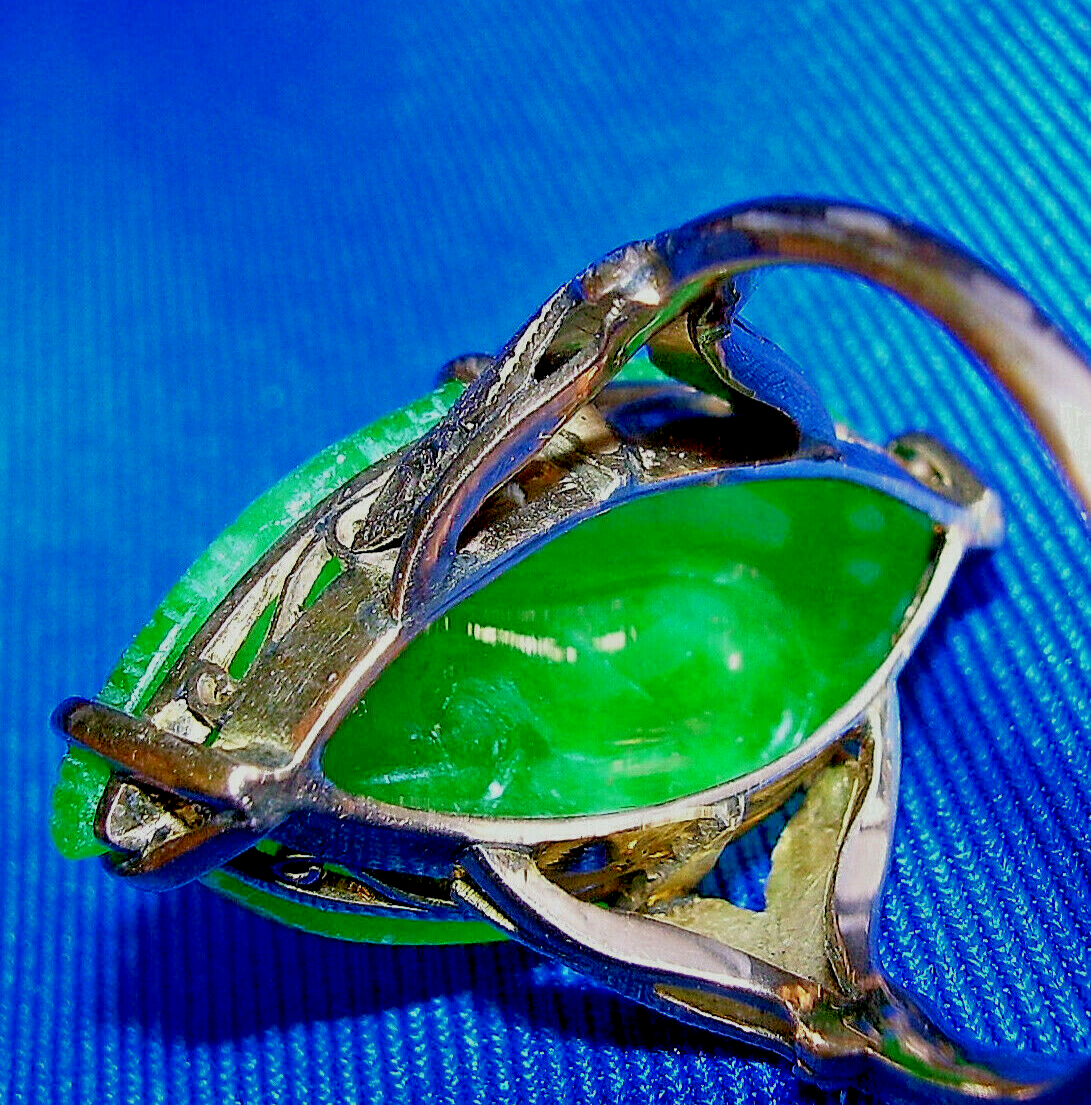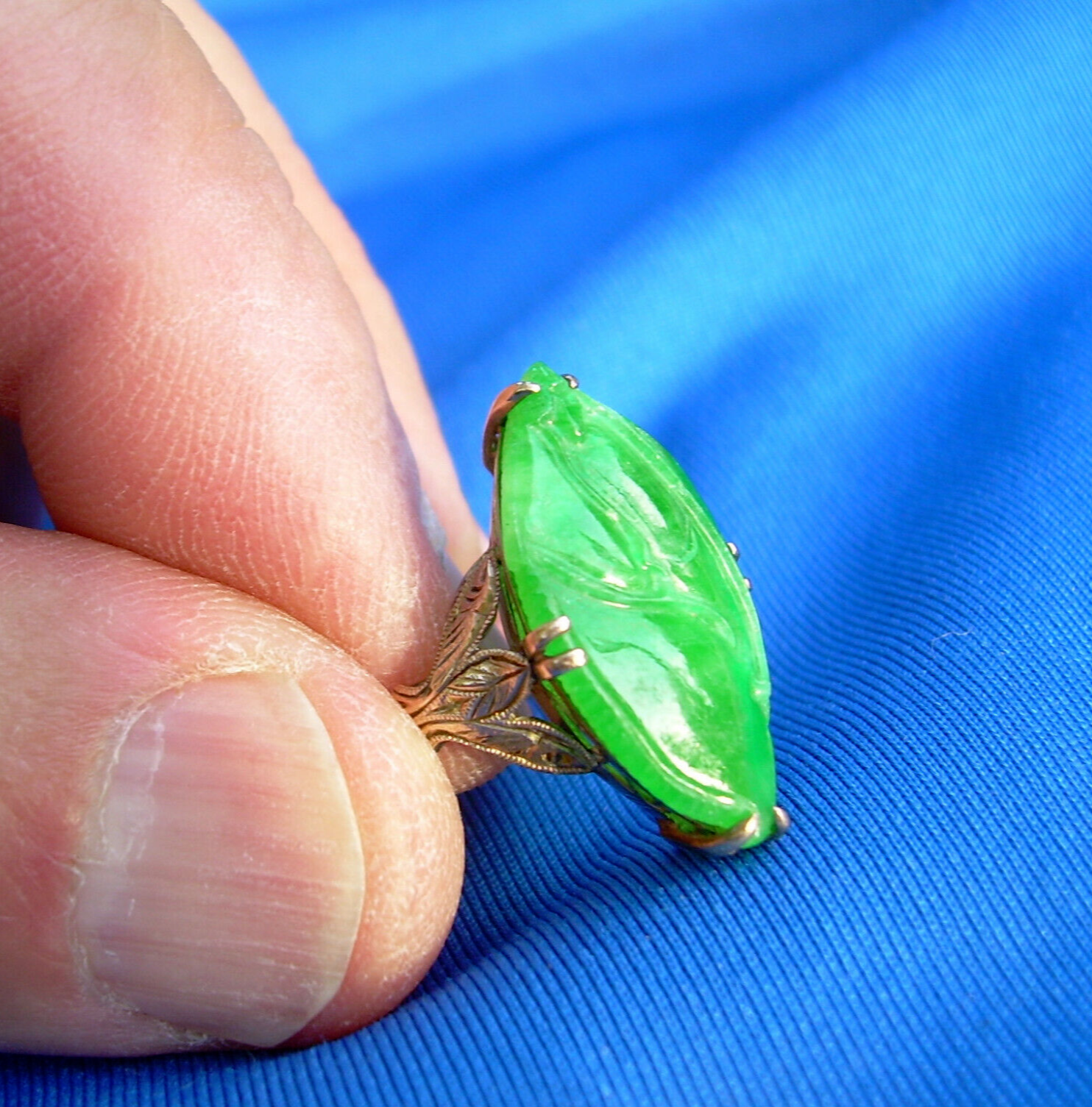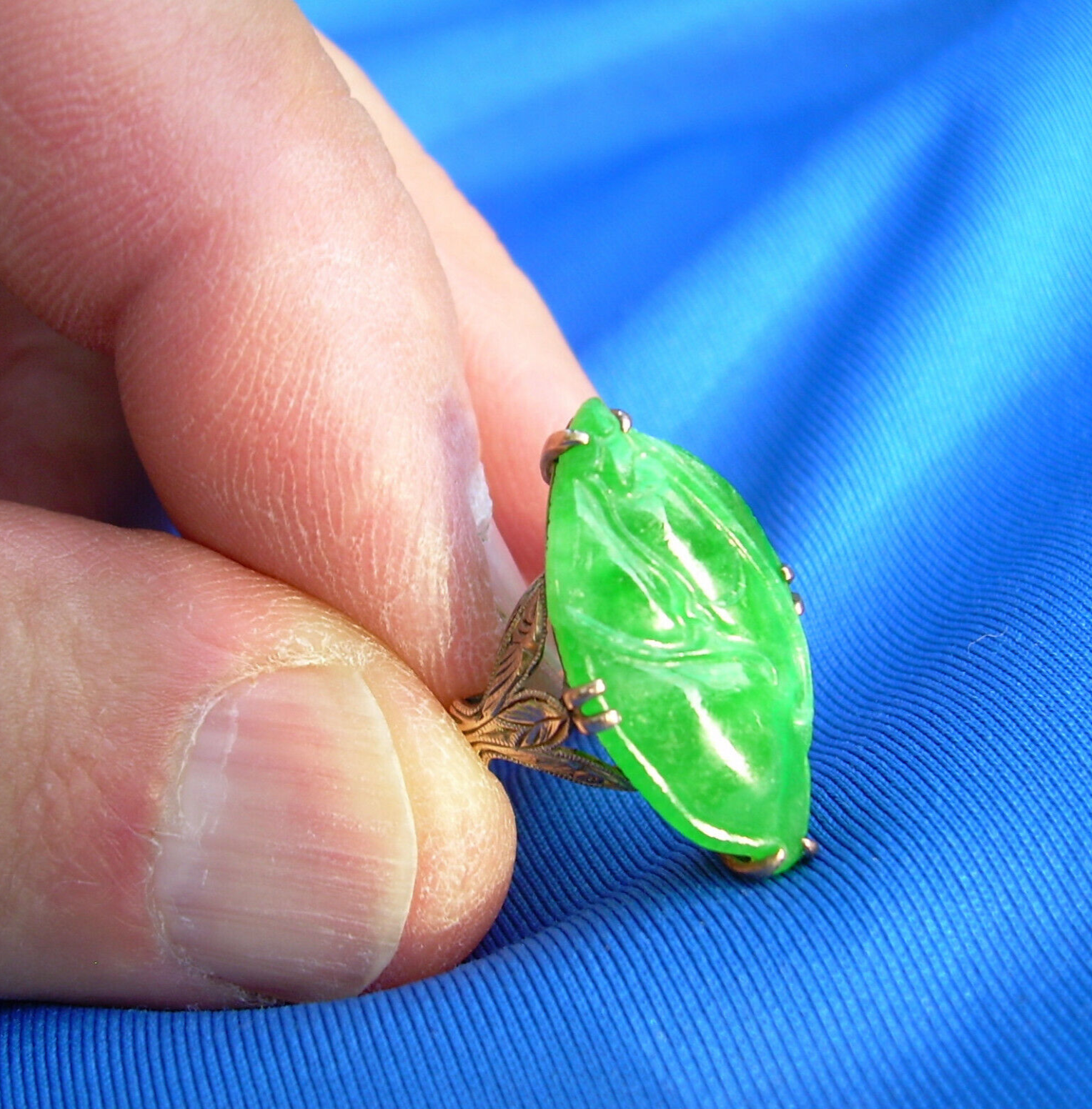 Earth mined Jadeite JADE Antique Engagement Ring Deco Solid 14k Rose Gold Gift