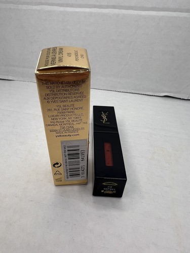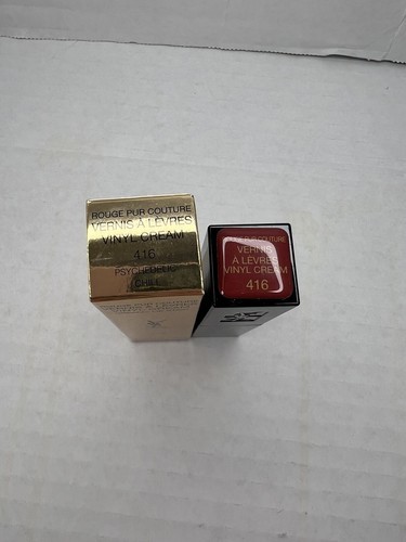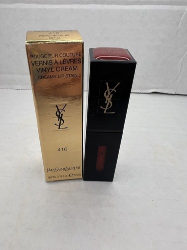 *YSL* Vinyl Cream Creamy Lip Stain #416 Psychedelic Chili .18oz *Discontinued*. Labeled as a tester. Box has some light scratches and wear. The product is new.