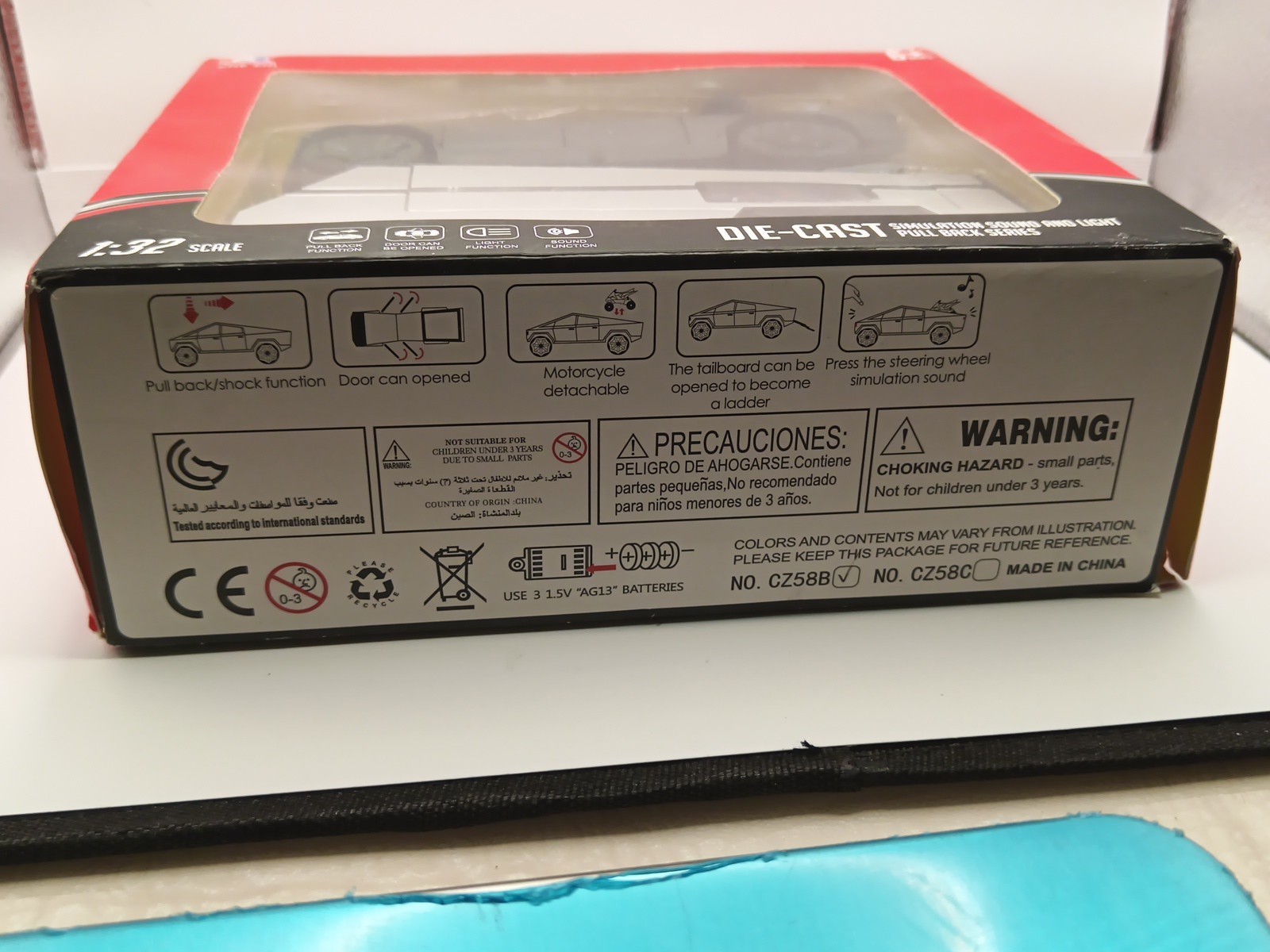 Dark Gray Tesla Cyber Truck, Quad, Camper 1:24 Scale New, Box Has Tear On Back