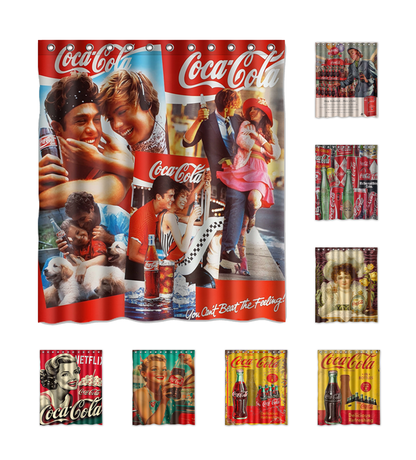 Hot!!! Vintage Coca Cola Custom Waterproof Polyester Shower Curtain 4 size