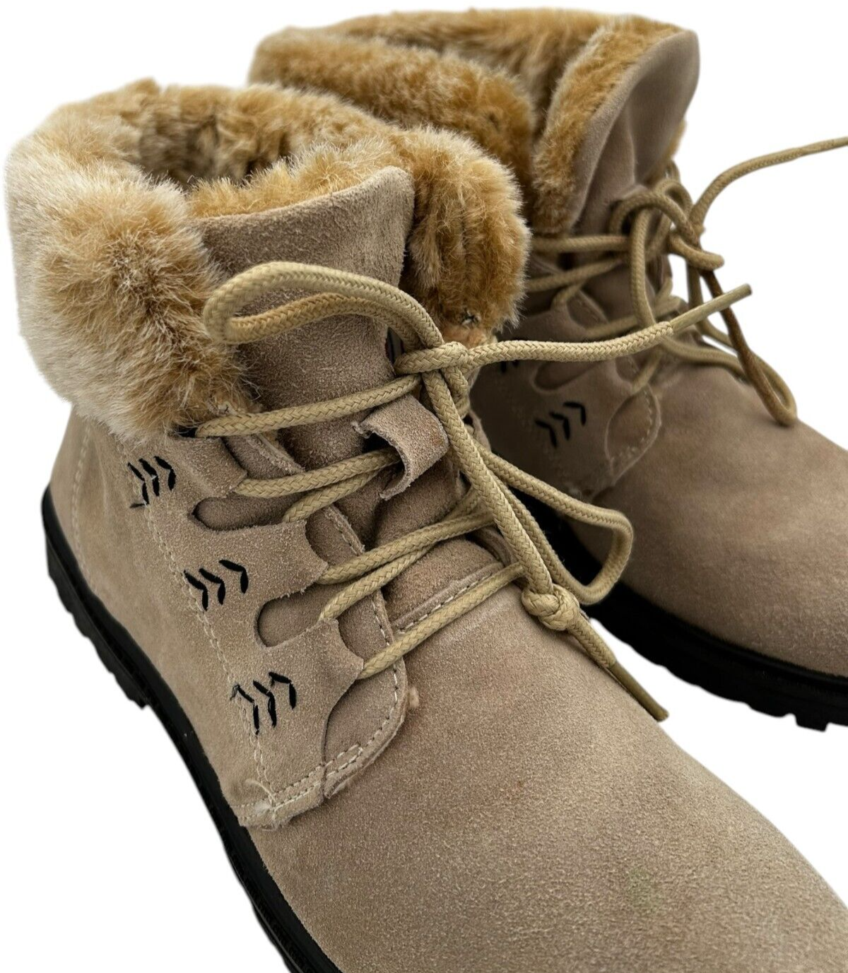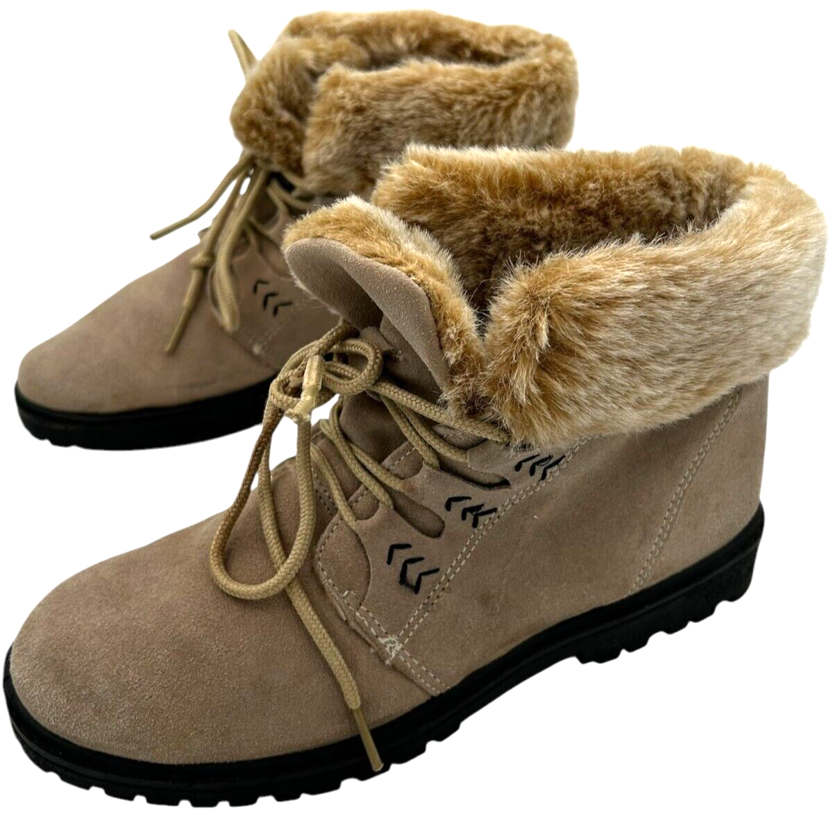 North Point Bay women's Suede Leather Faux Fur Lined Ankle Hiking Booties size 8