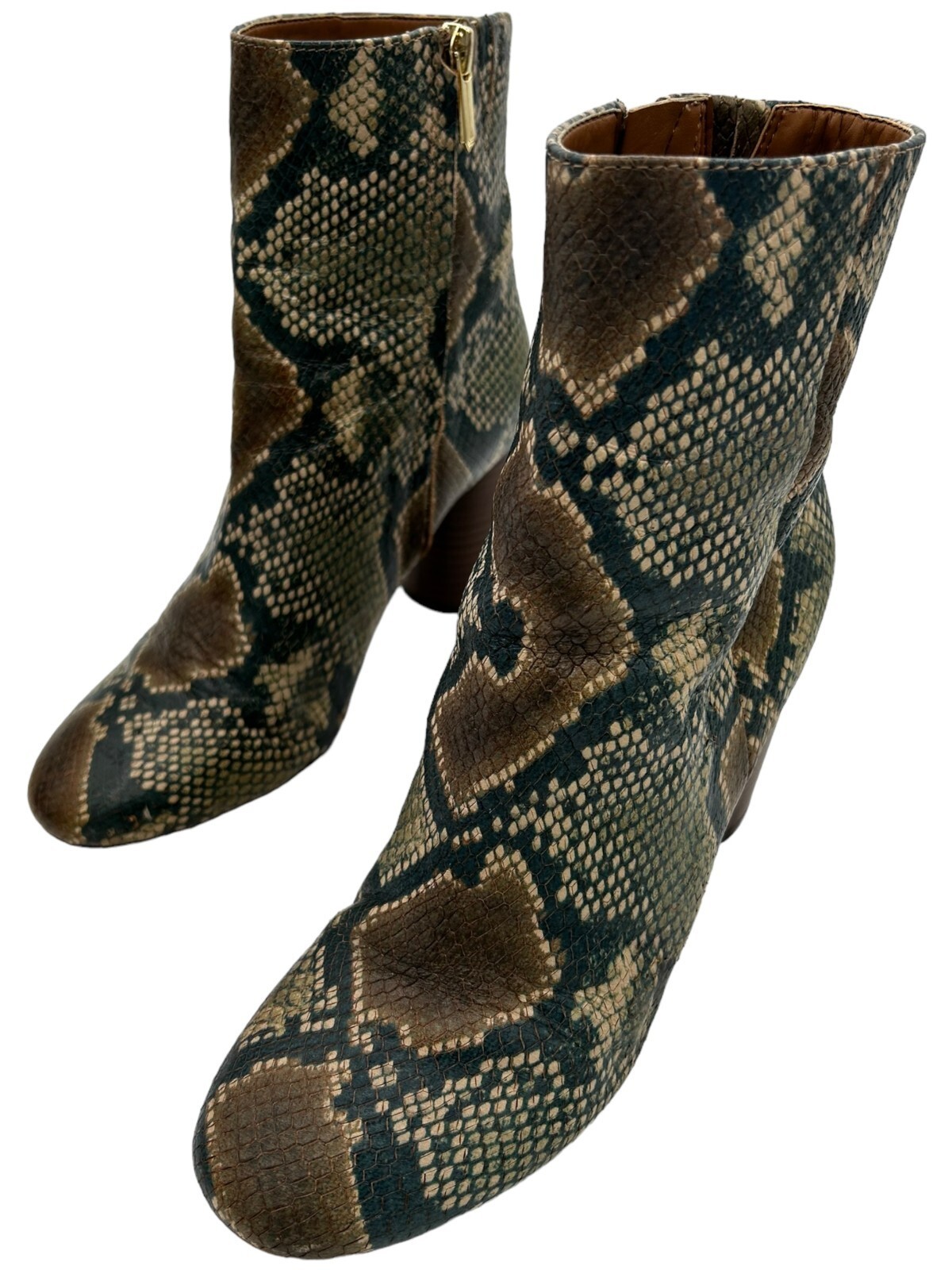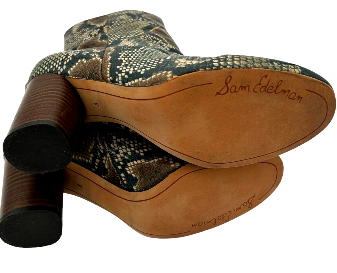 Sam Edelman Women's Leather Snake Print Corra Ankle Block Heel Zip Boots Size 8M