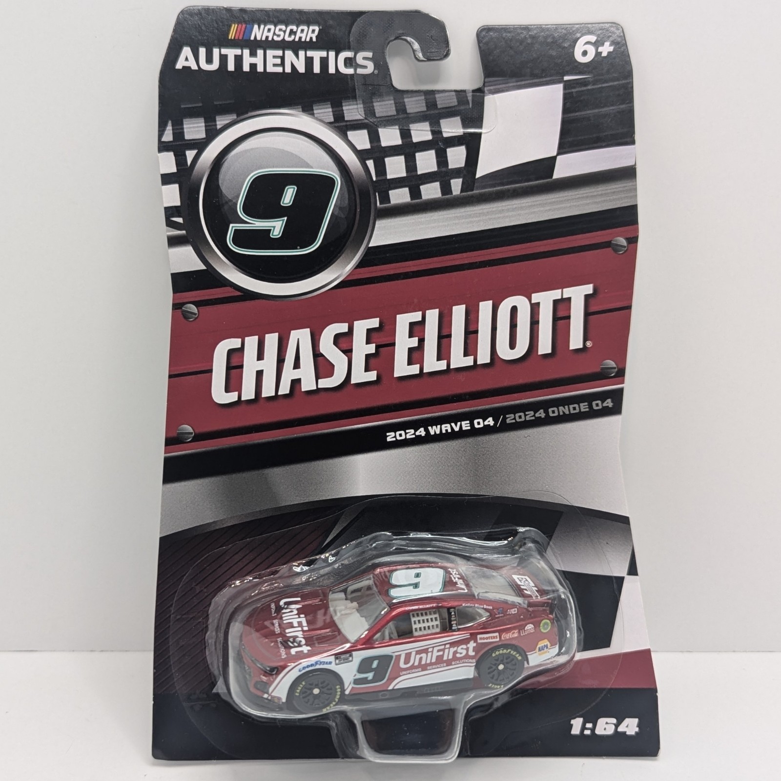 Official Lionel Racing NASCAR Authentics 1:64 diecast featuring Chase Elliott?s #9 UniFirst Chevrolet Camaro in the maroon and white 2024 Wave 4 release. This Hendrick Motorsports entry presents an updated UniFirst design for the 2024 season, pairing crisp colors with Elliott?s signature No. 9 style.