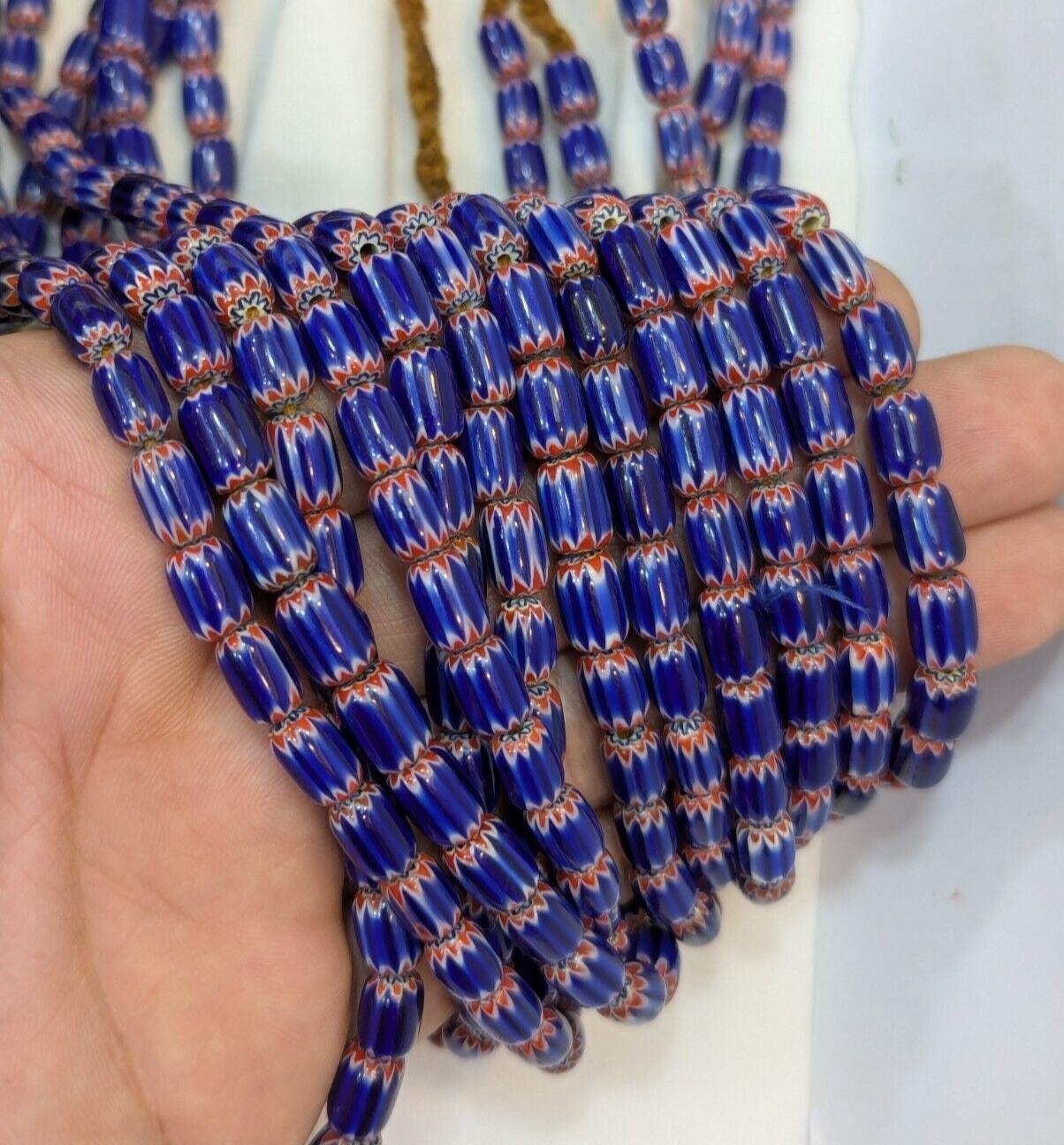 Collar de cuentas de vidrio de 6x9 mm de cuentas de chevron azul antiguo...