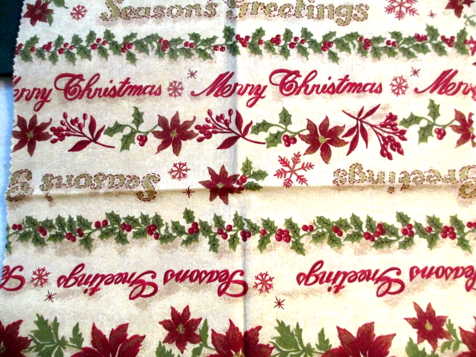 Photo 4 - Christmas greetings and red poinsettias on a speckled tan background measuring 14" x 27";