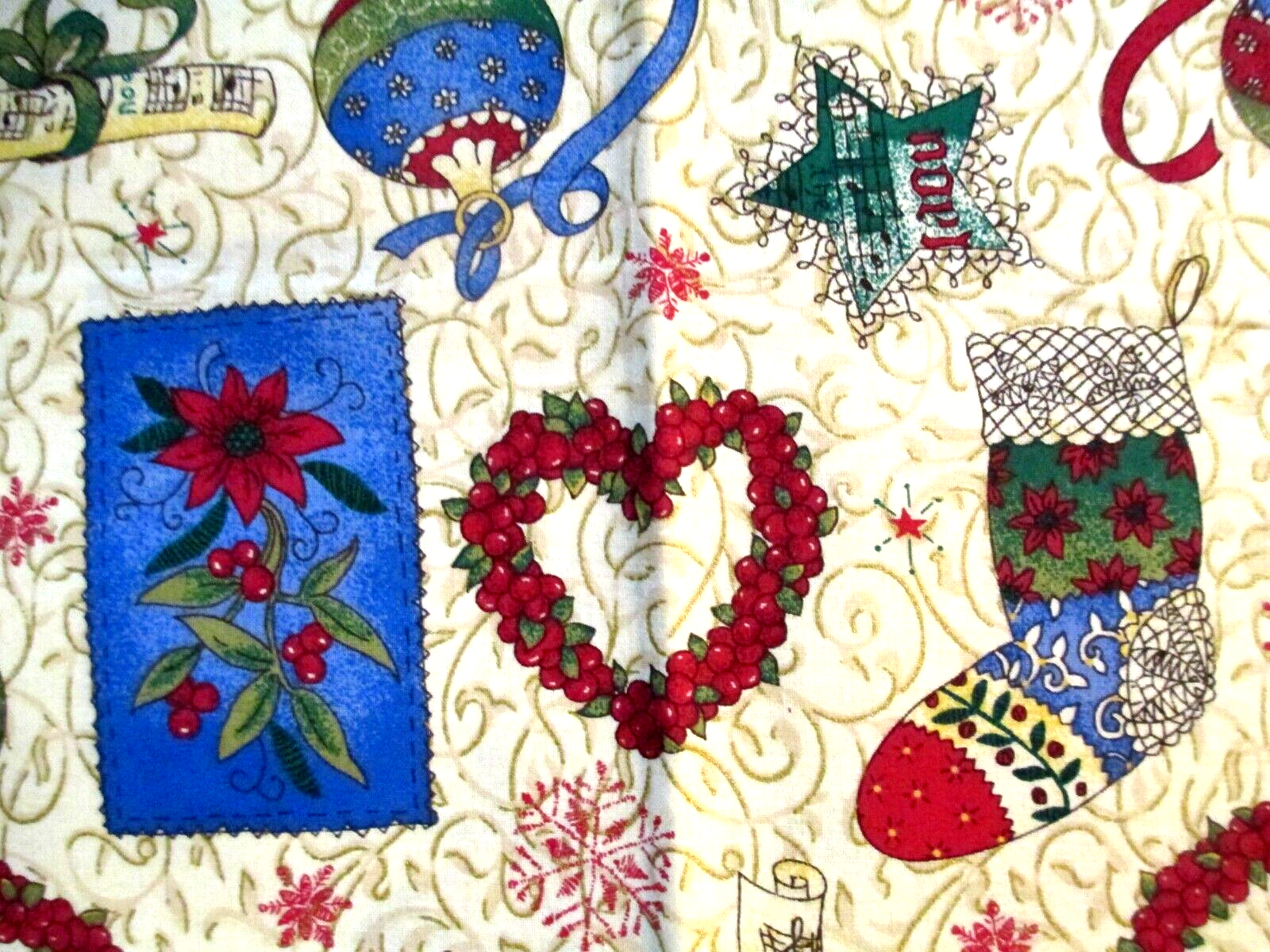This fabric listing is by Red Rooster entitled "Home for the Holidays"; a 5 piece sampler in country colors of deep blue, Christmas red and green. Please take note of their dimensions below: