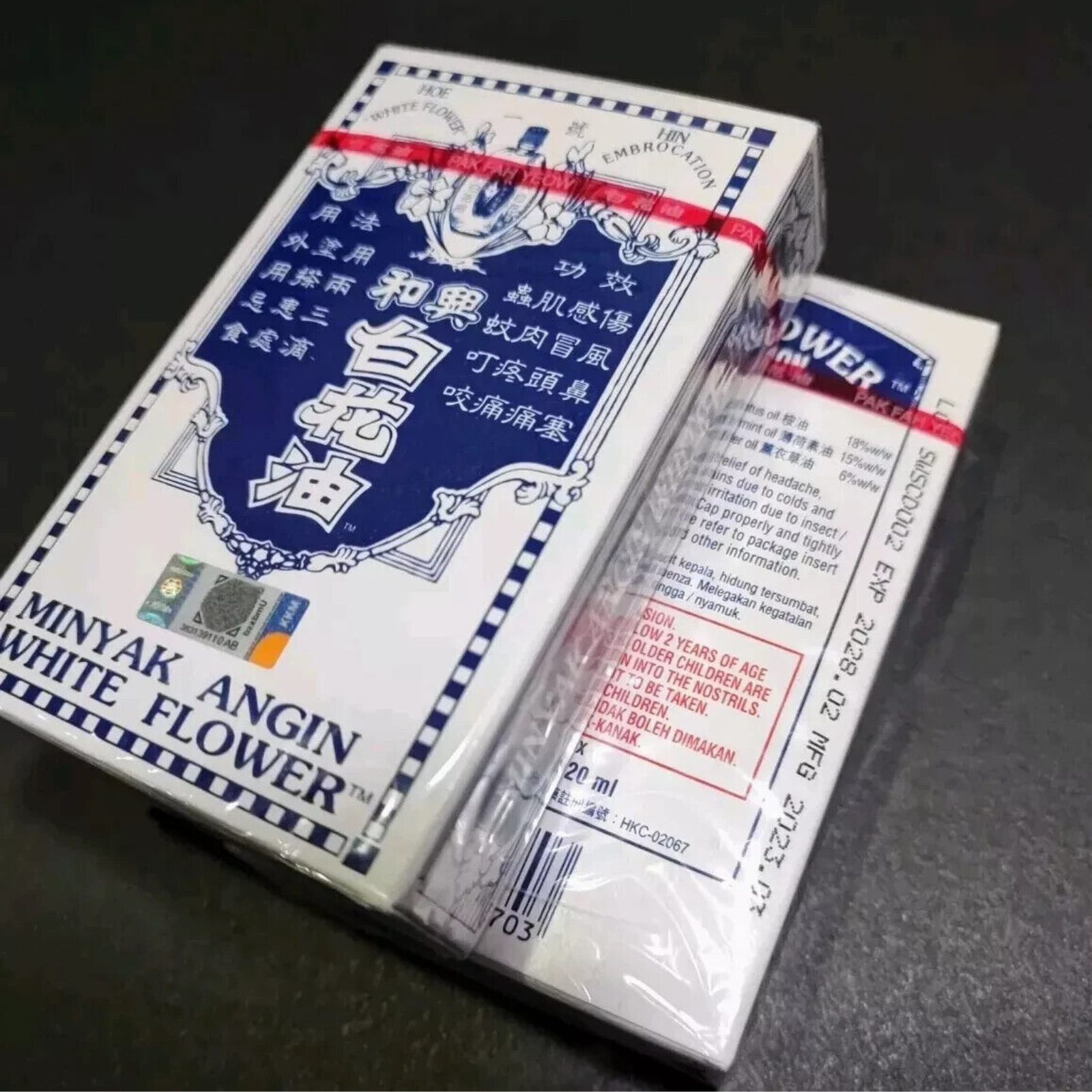 2 X 20ml White Flower Oil Massage Rub Herb Hoe Hin Pak Fah Yeow Pain (EXP 2028)