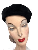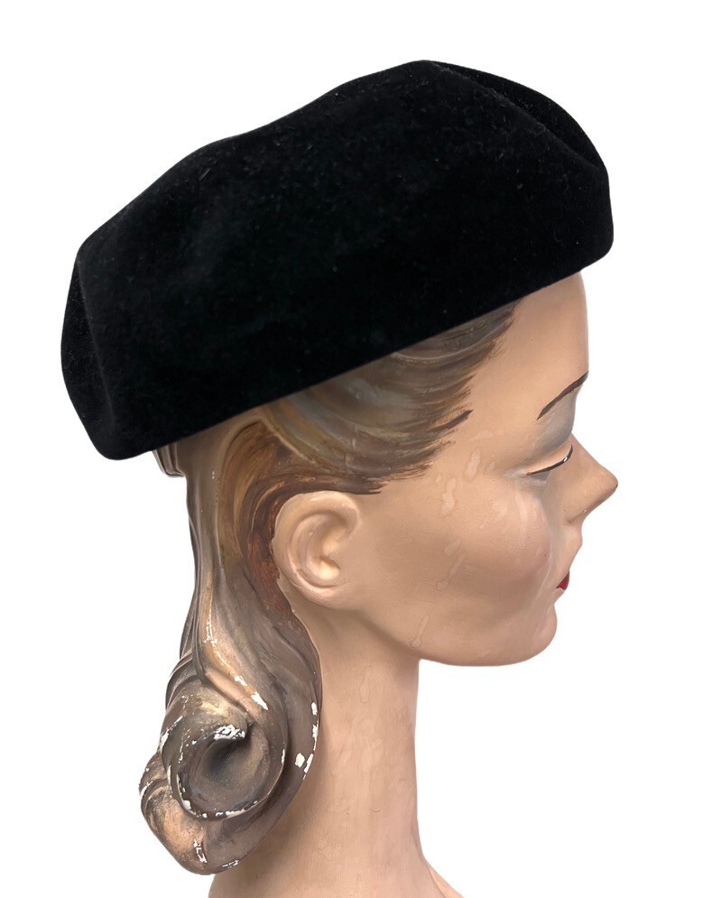 Vintage Womens Borsalino Antica Casa Beret Jet Black Fur Felt O/S 1950s Minty