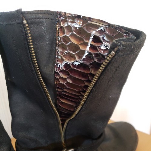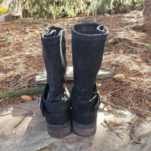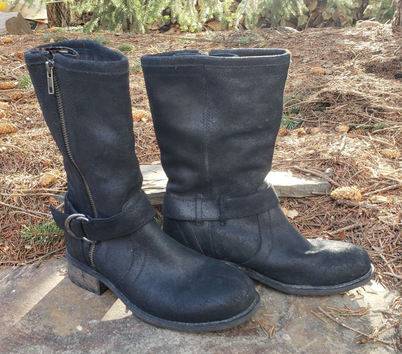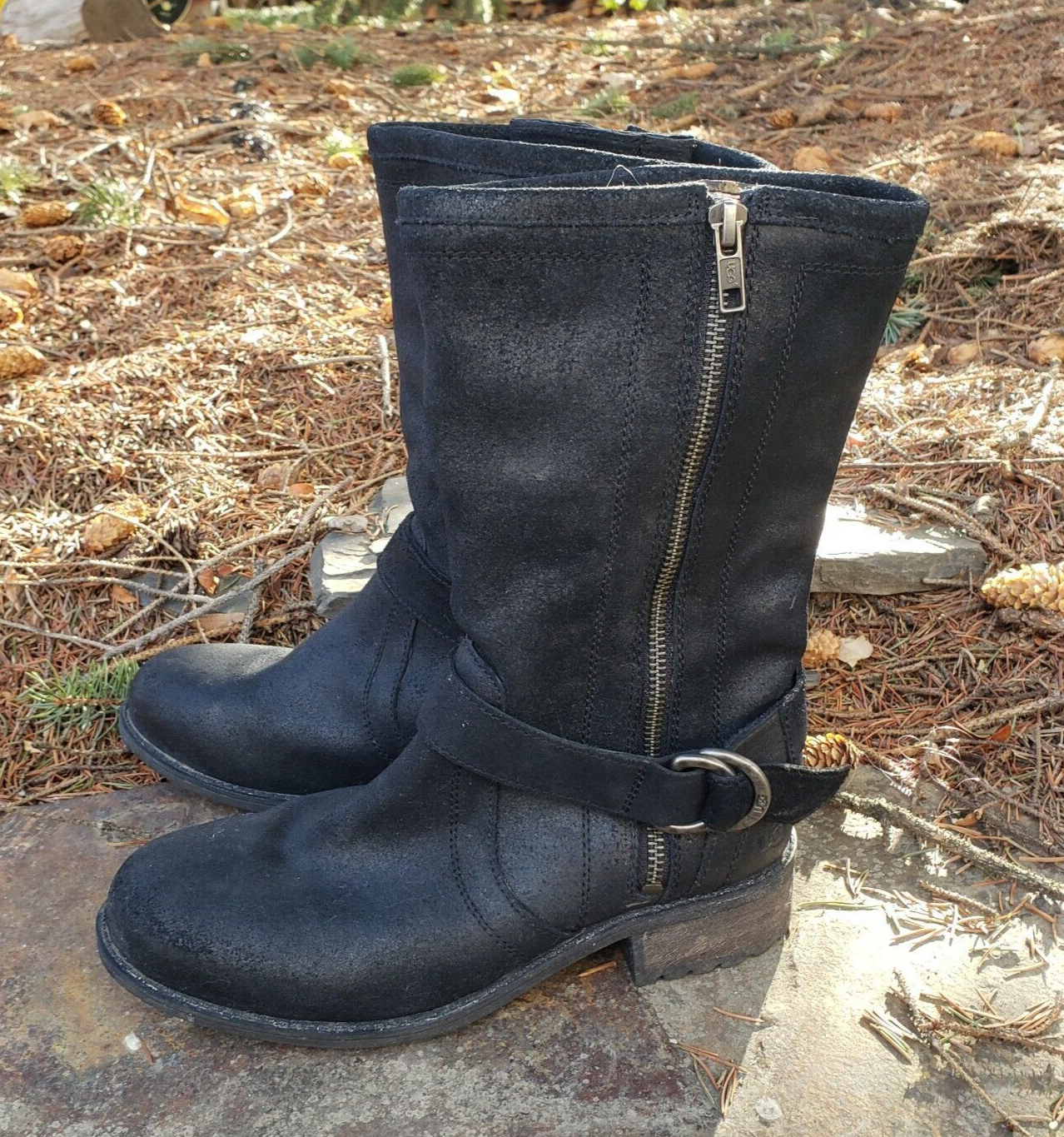 UGG Silva Moto Boots Black Suede Leather Buckle Australia Womens 7 Side Zip