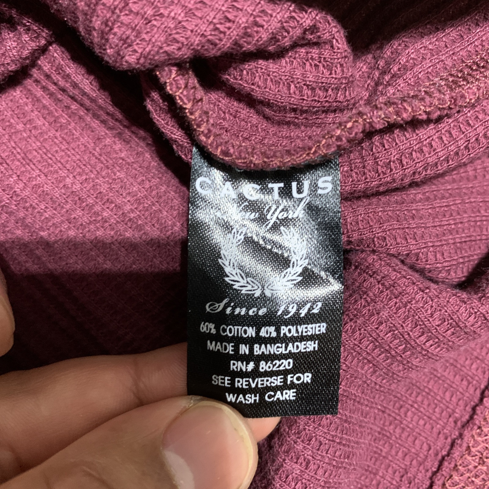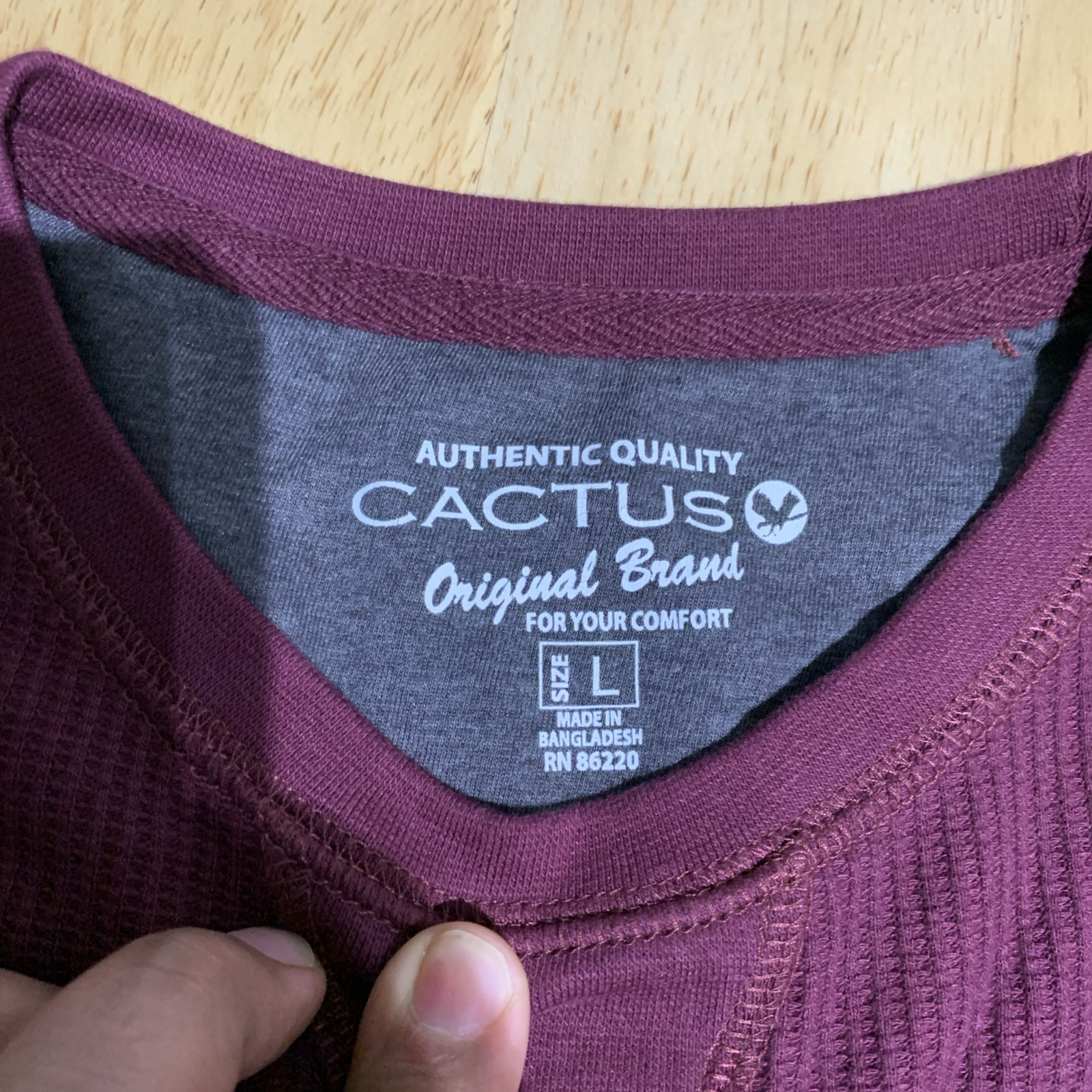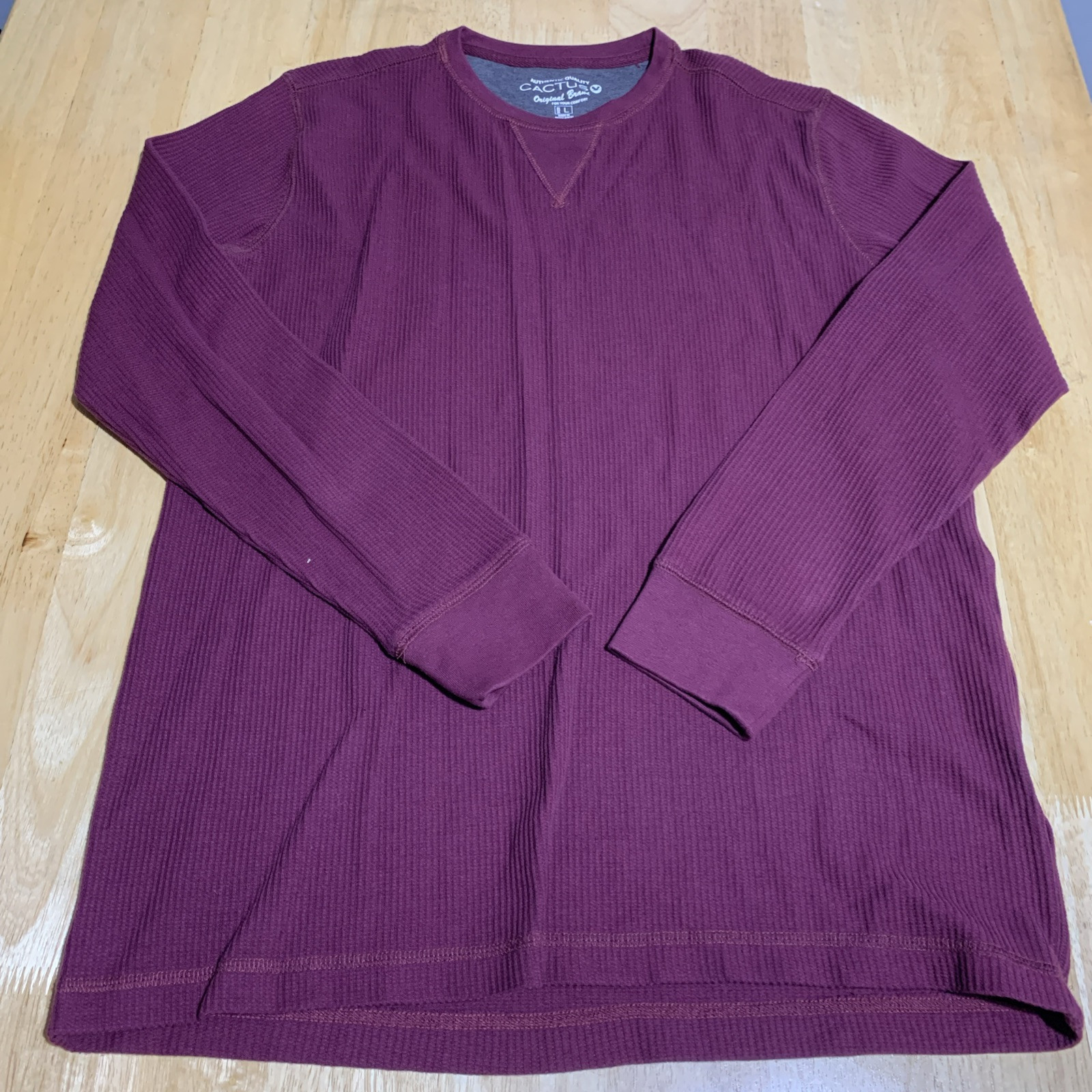 Men’s Cactus Authentic Quality Size L Burgudy Long Sleeve Henley Thermal Shirt