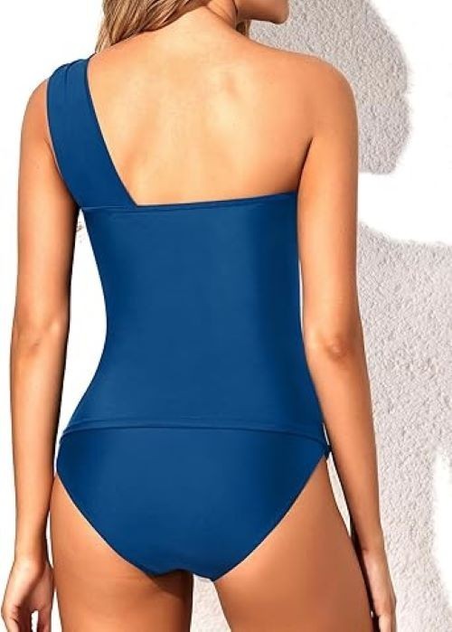 One shoulder strap goes across the breasts and the cut of the tankini top is asymmetrical, adding flattering elements to the swimsuit, which fits perfectly and is appropriate to wear in every occasion and ensures that you are still look sexy and elegant.