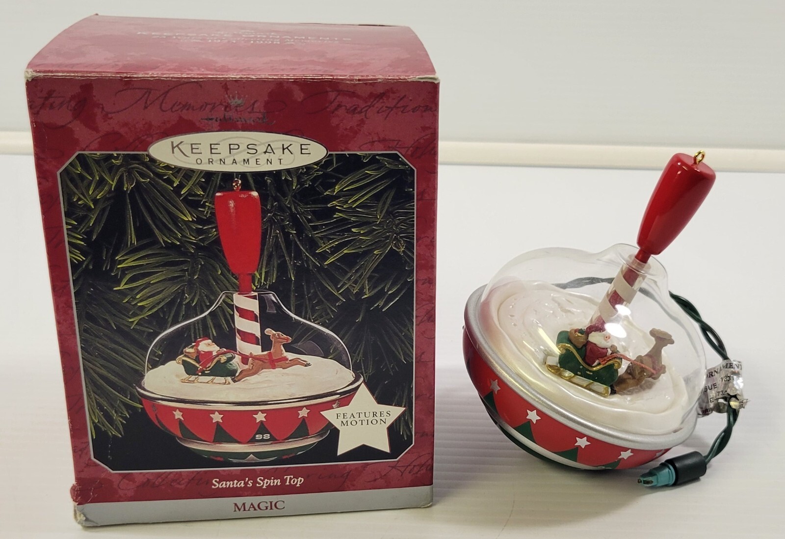 *X) 1998 Hallmark Keepsake Santa's Spin Top Magic Christmas Ornament