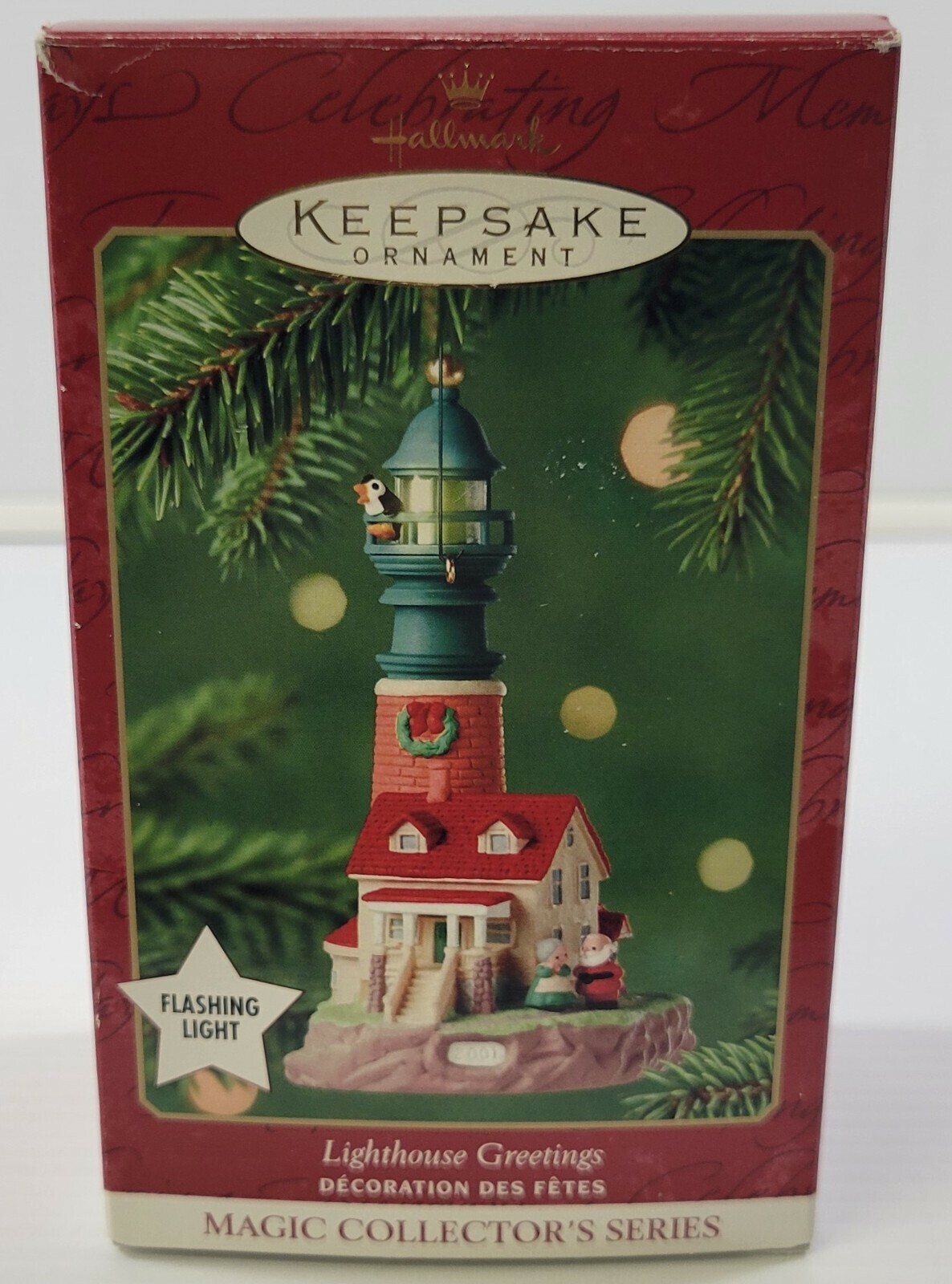 2001 Hallmark Keepsake Lighthouse Greetings Magic Christmas Ornament