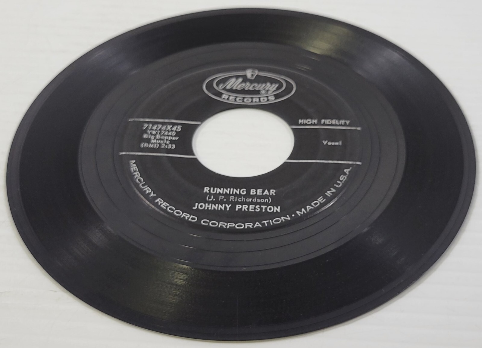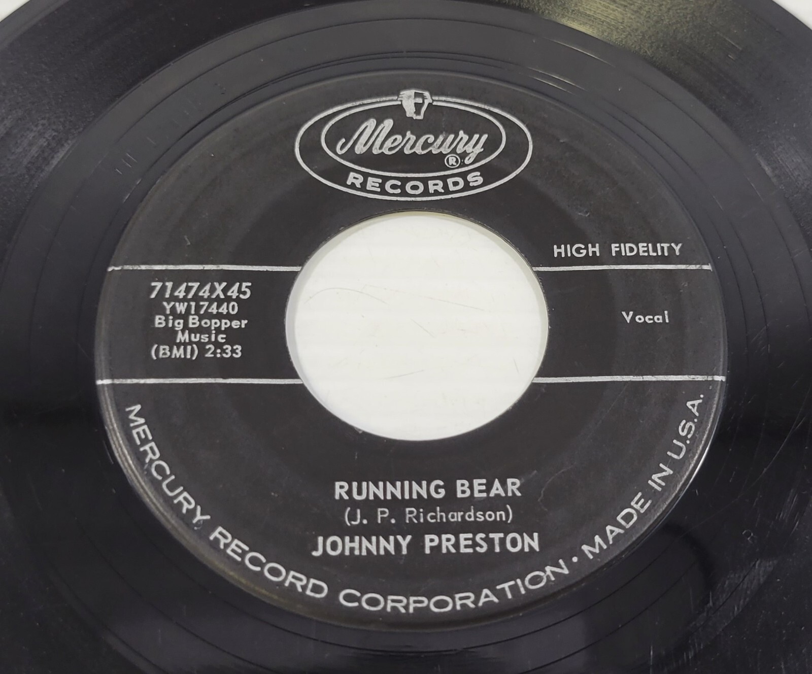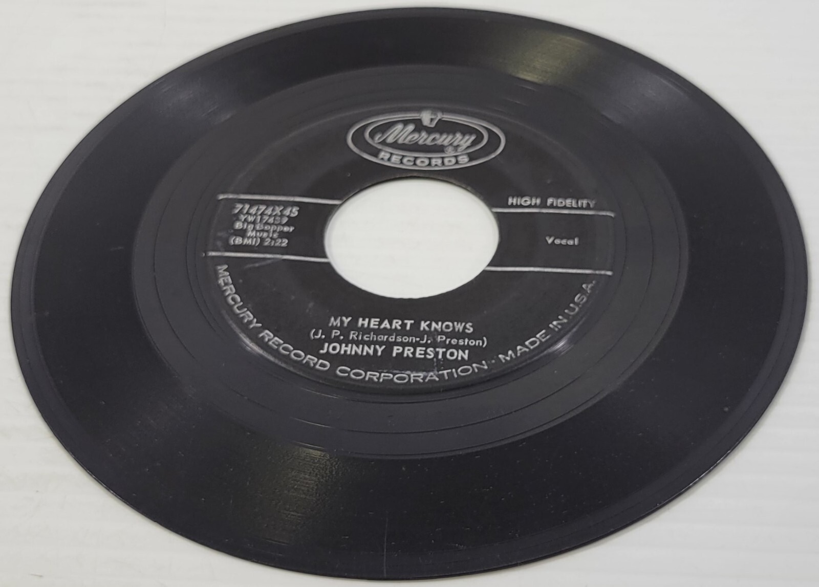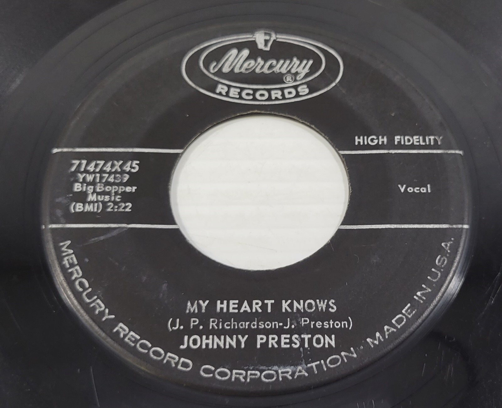 R) Johnny Preston - My Heart Knows - Running Bear - 45 RPM - Vinyl Record