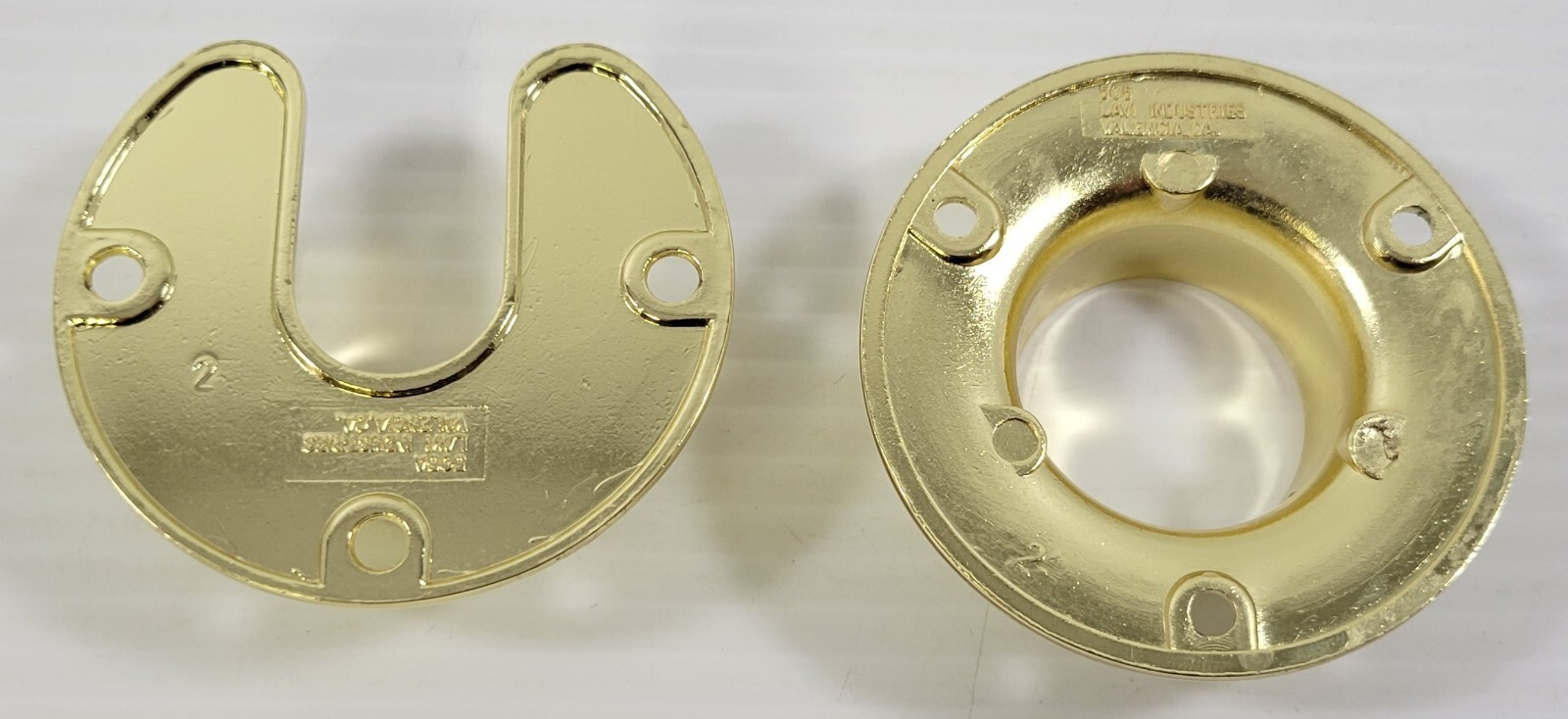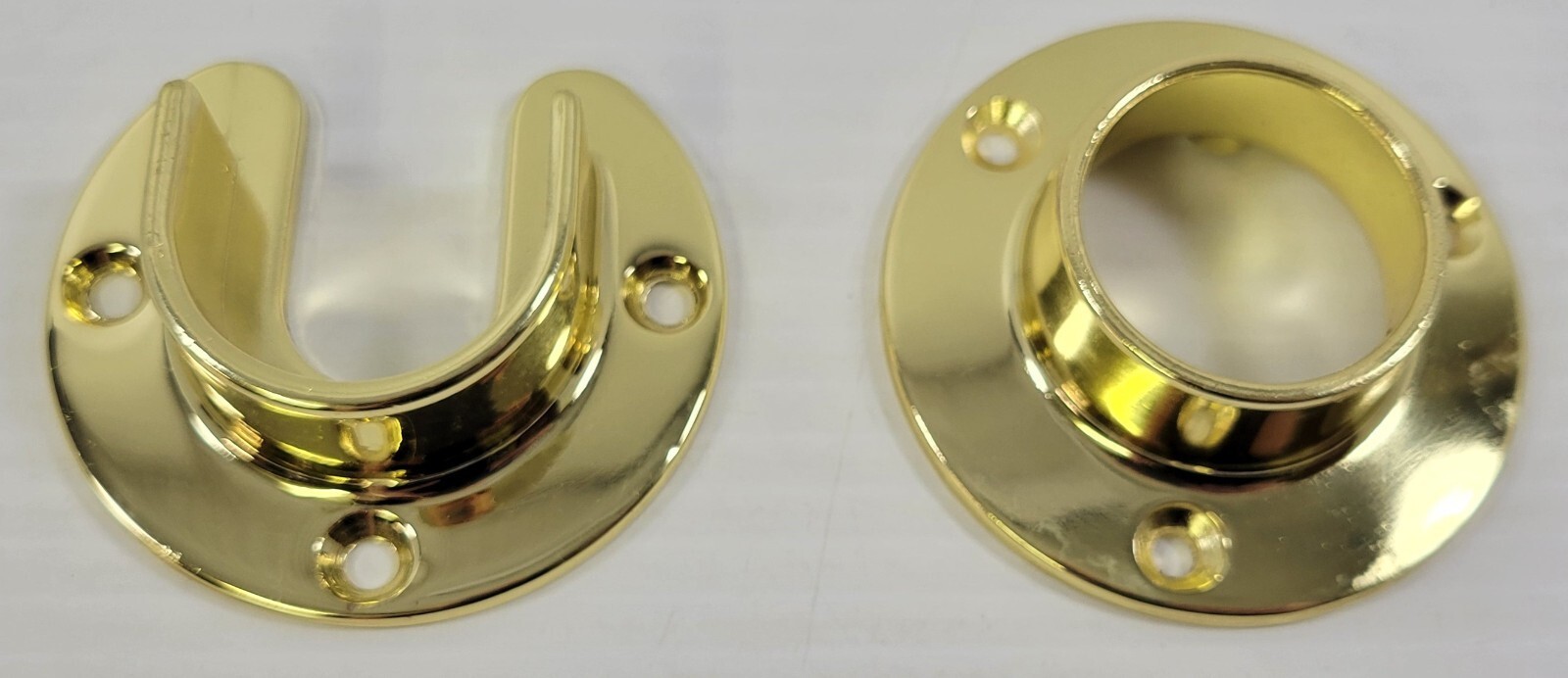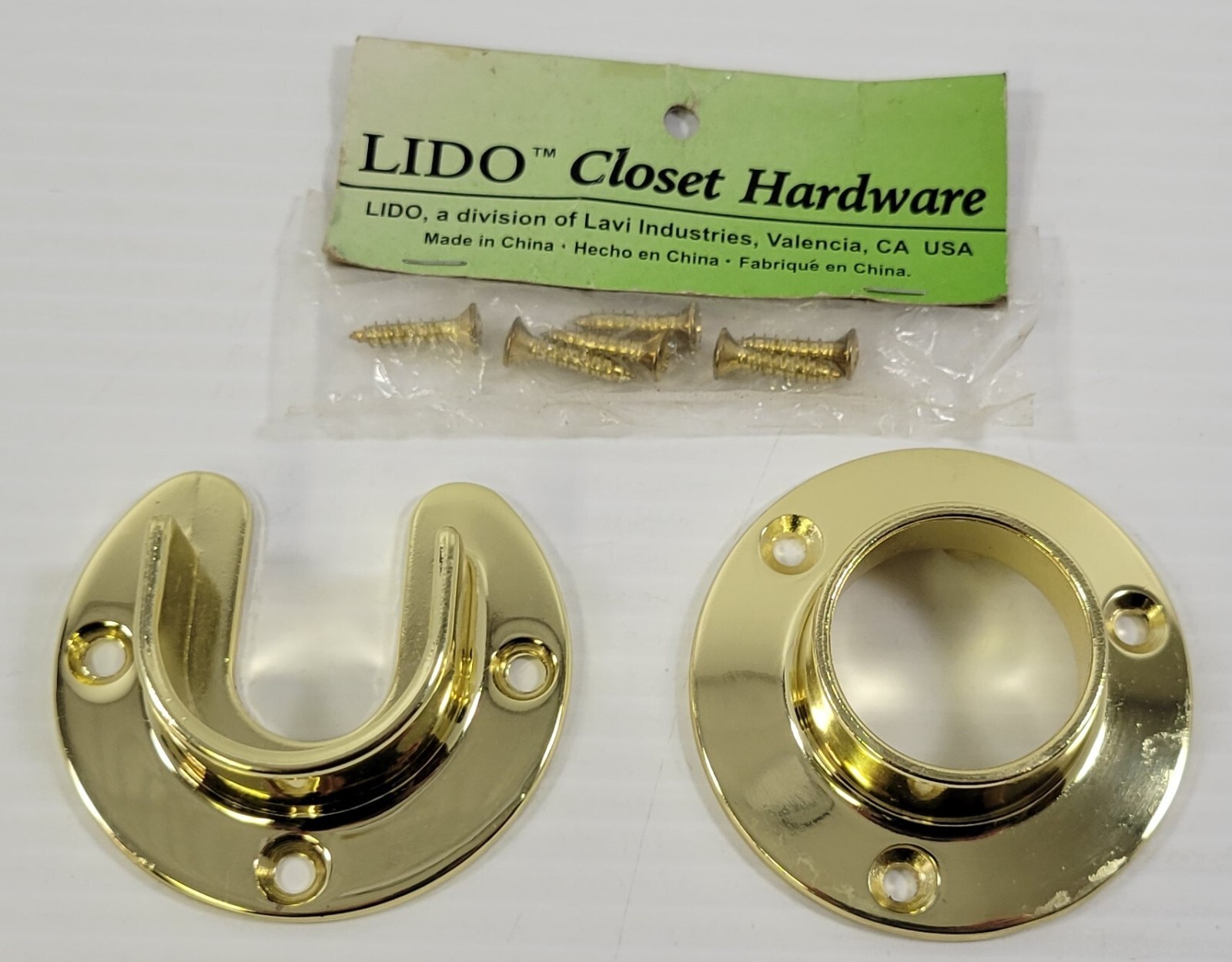 Q1) Vintage LIDO Gold Tone Brass Closet Pole Rod Hanging Hardware Flange Set