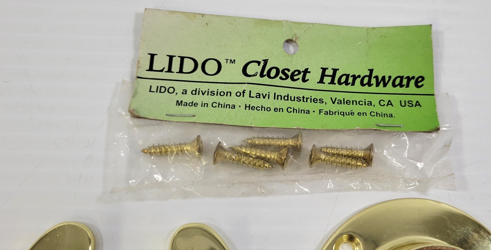 Vintage LIDO Gold Tone Brass Closet Pole Rod Hanging Hardware Flange Set