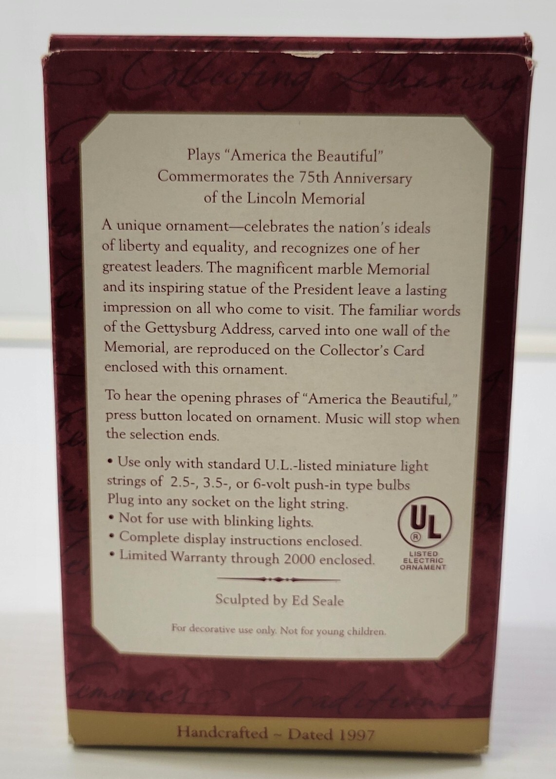 1997 Hallmark Keepsake The Lincoln Memorial Magic Christmas Ornament
