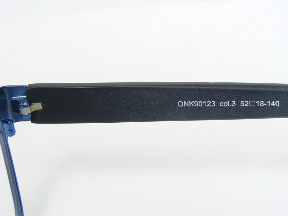 NEW ONKELS ONK90123 COL. 3 BLUE EYEGLASSES GLASSES FRAME 52-18-140mm. (B32) Actual photos of these glasses. This is exactly what you will receive. NOTES: NEW Eyeglasses but with a stain on the left temple from the tag and therefore the cost is reduced. Please look the photos. Style and comfort in everyday use. A pair of glasses is not just an accessory; it provides the first hint of an individual?s personality. The wearer must enjoy a frame and feel that it is completely consistent with his or her look and mindset. A great pair of glasses, with all its detail and complexity must above all be an extension of the individual. Returns are always FREE for any reason. If you don't like it, simply click "Item no longer needed". Item should be returned within 60 days as UNUSED in original packa