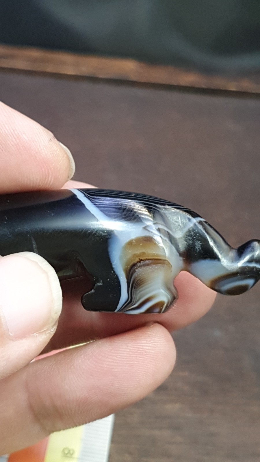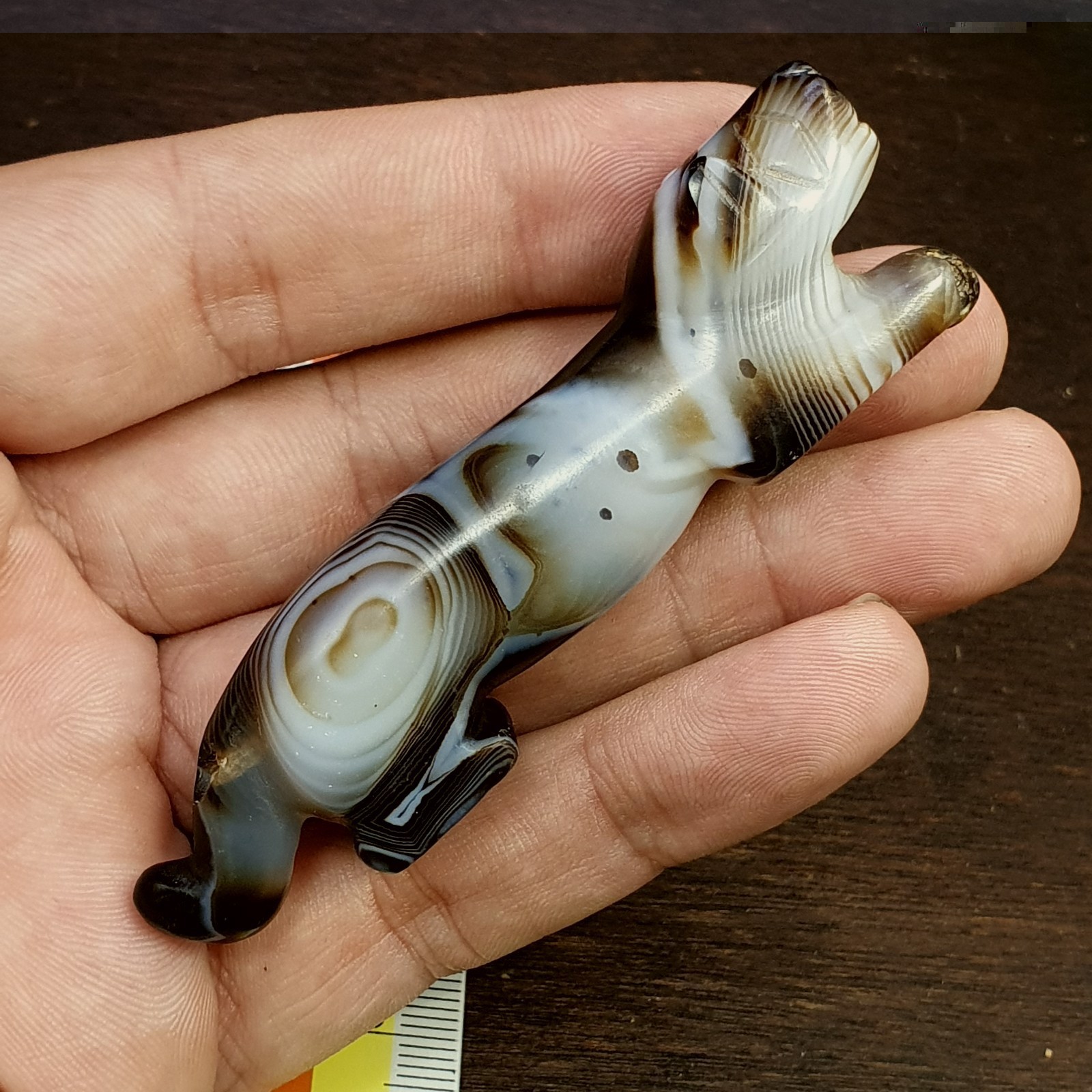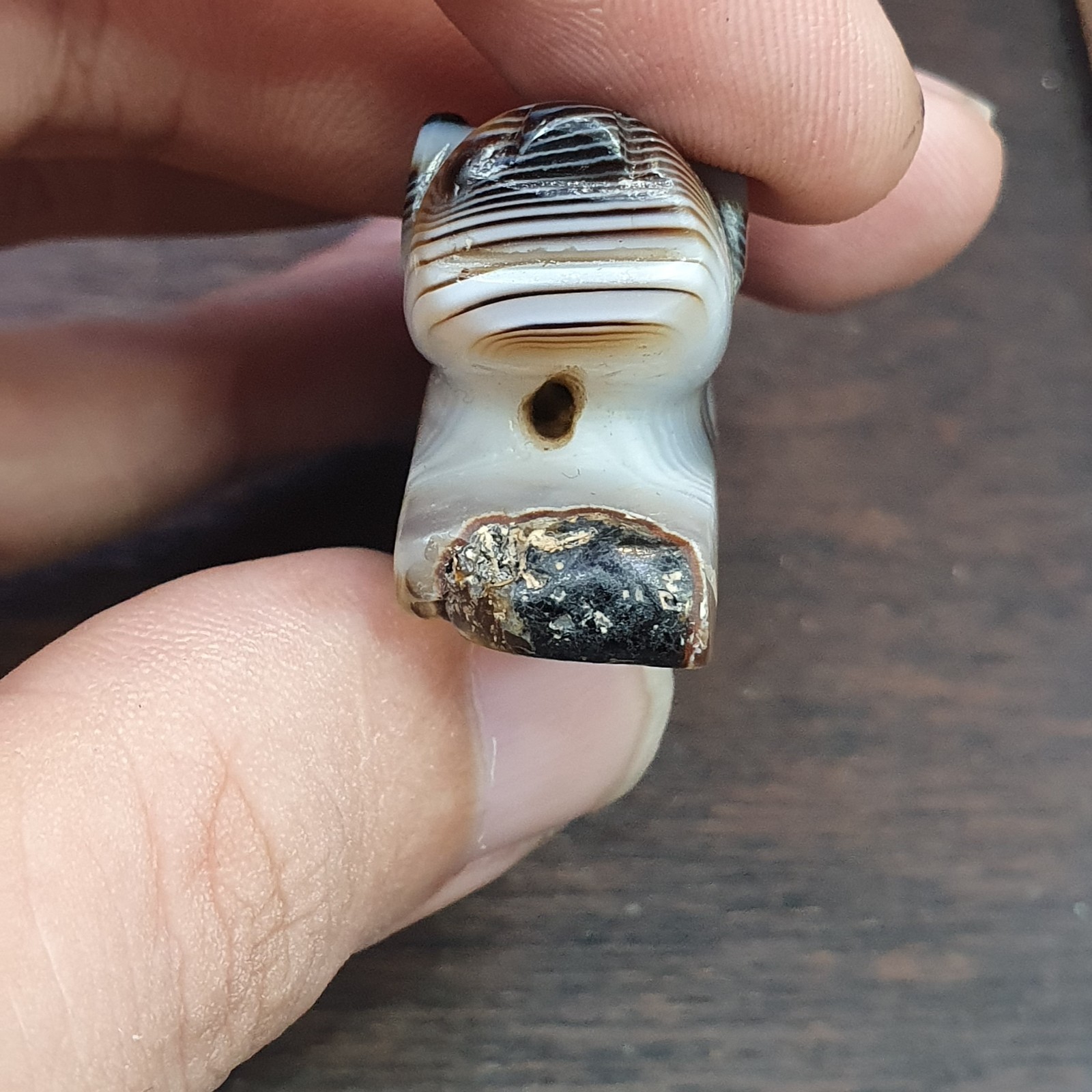 Antica statuetta animale in agata tibetana figura leone amuleto di perline...