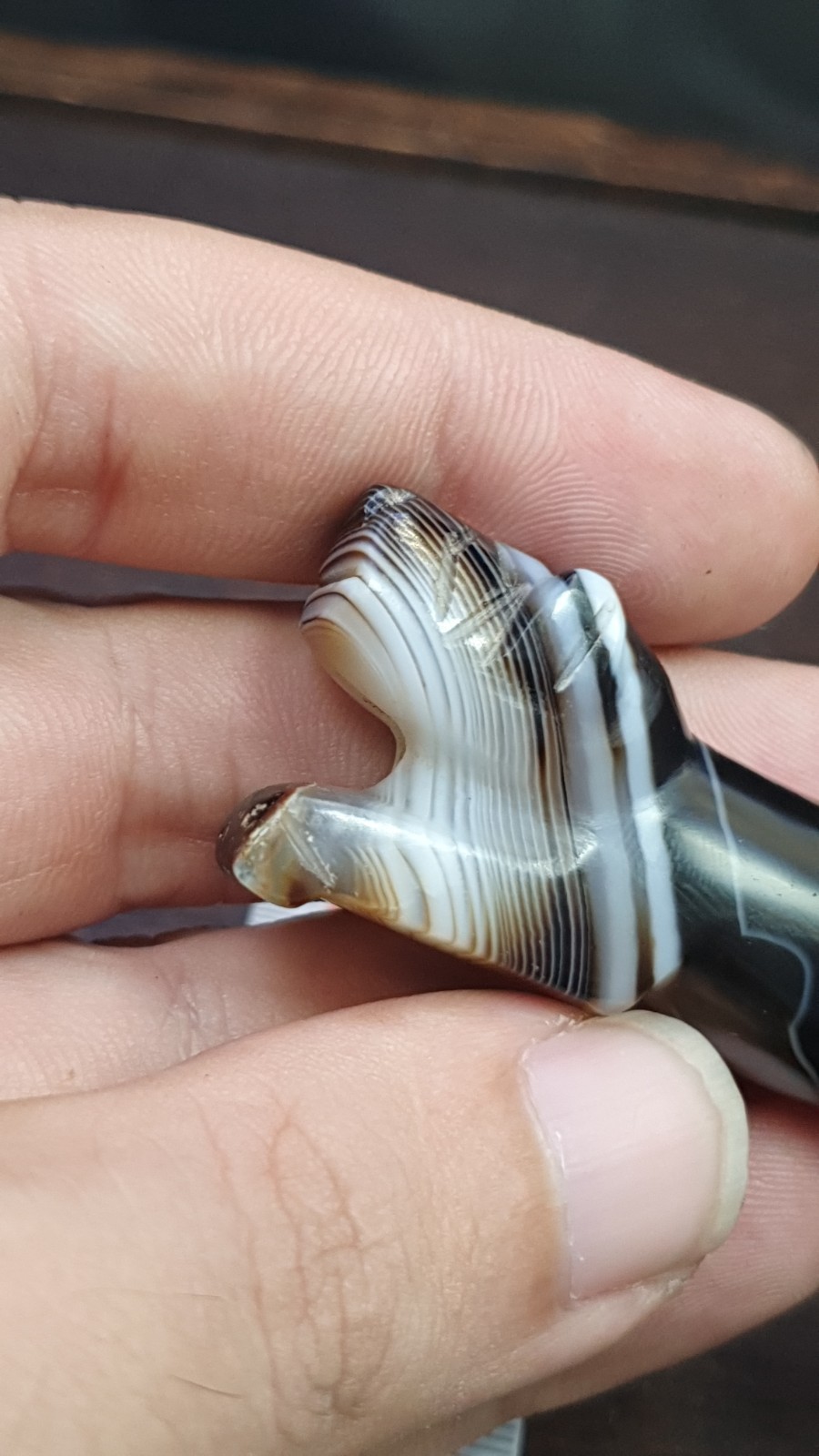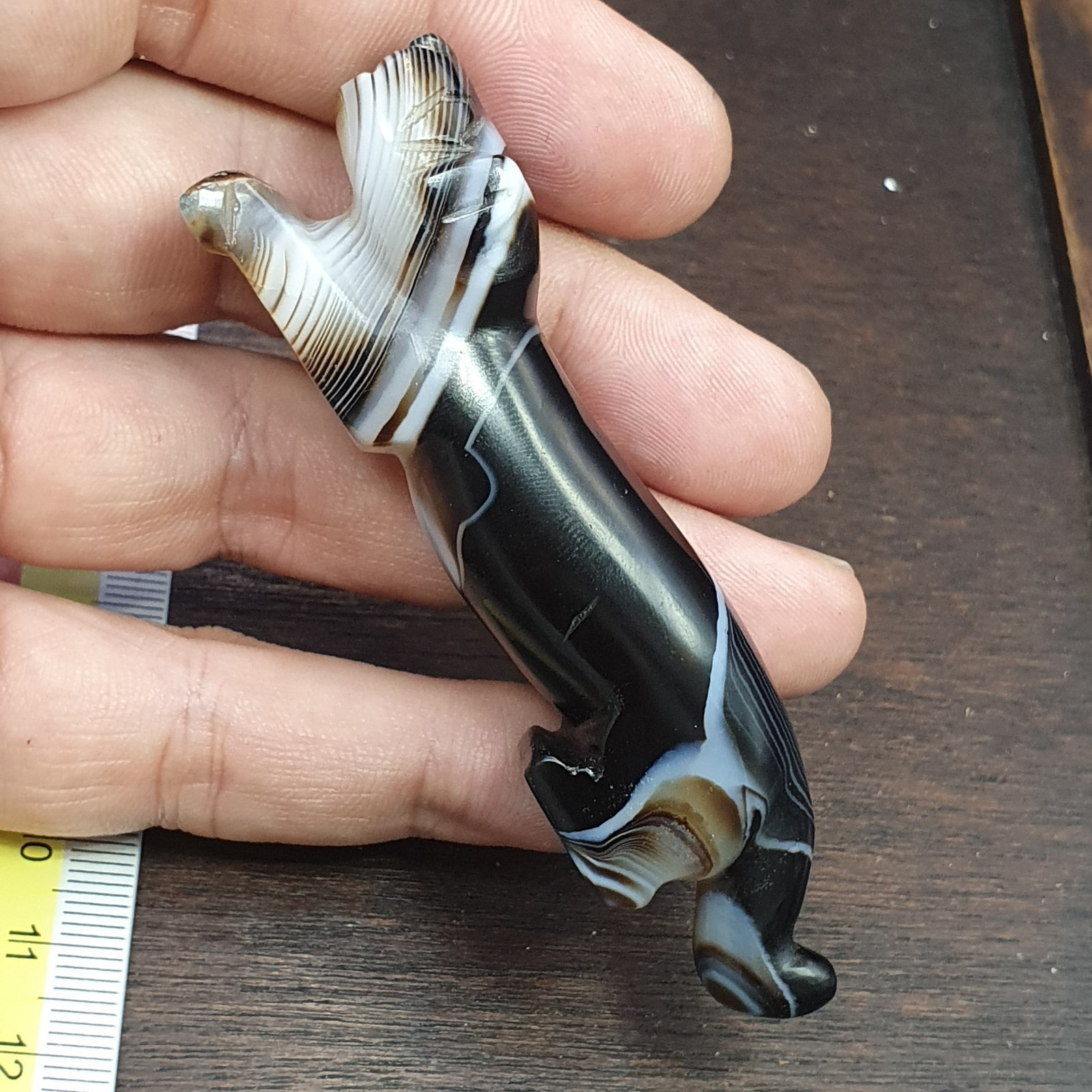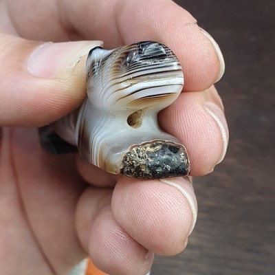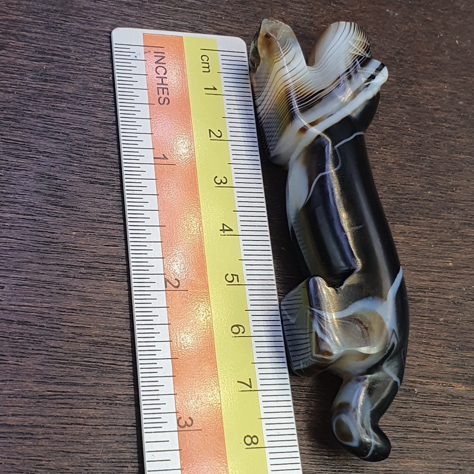 Antica statuetta animale in agata tibetana figura leone amuleto di perline...