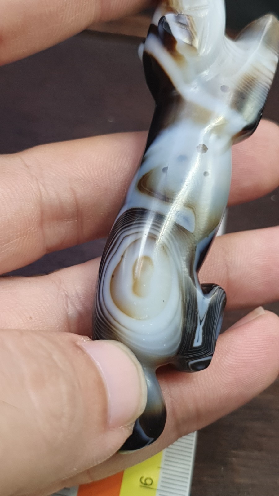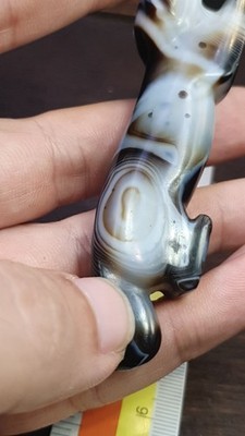 Questa antica statuetta animale in agata tibetana e una figura di leone splendidamente scolpita in pietra. I colori bianco e nero della perla di agata aggiungono un tocco unico a questo oggetto decorativo da collezione. Con il suo stile asiatico e la finitura anticata, questo pezzo sarebbe una grande aggiunta a qualsiasi collezione a tema storico o animale. Le sue intricate sculture e il soggetto della storia lo rendono un pezzo unico e accattivante per collezionisti e appassionati di arte tibetana.