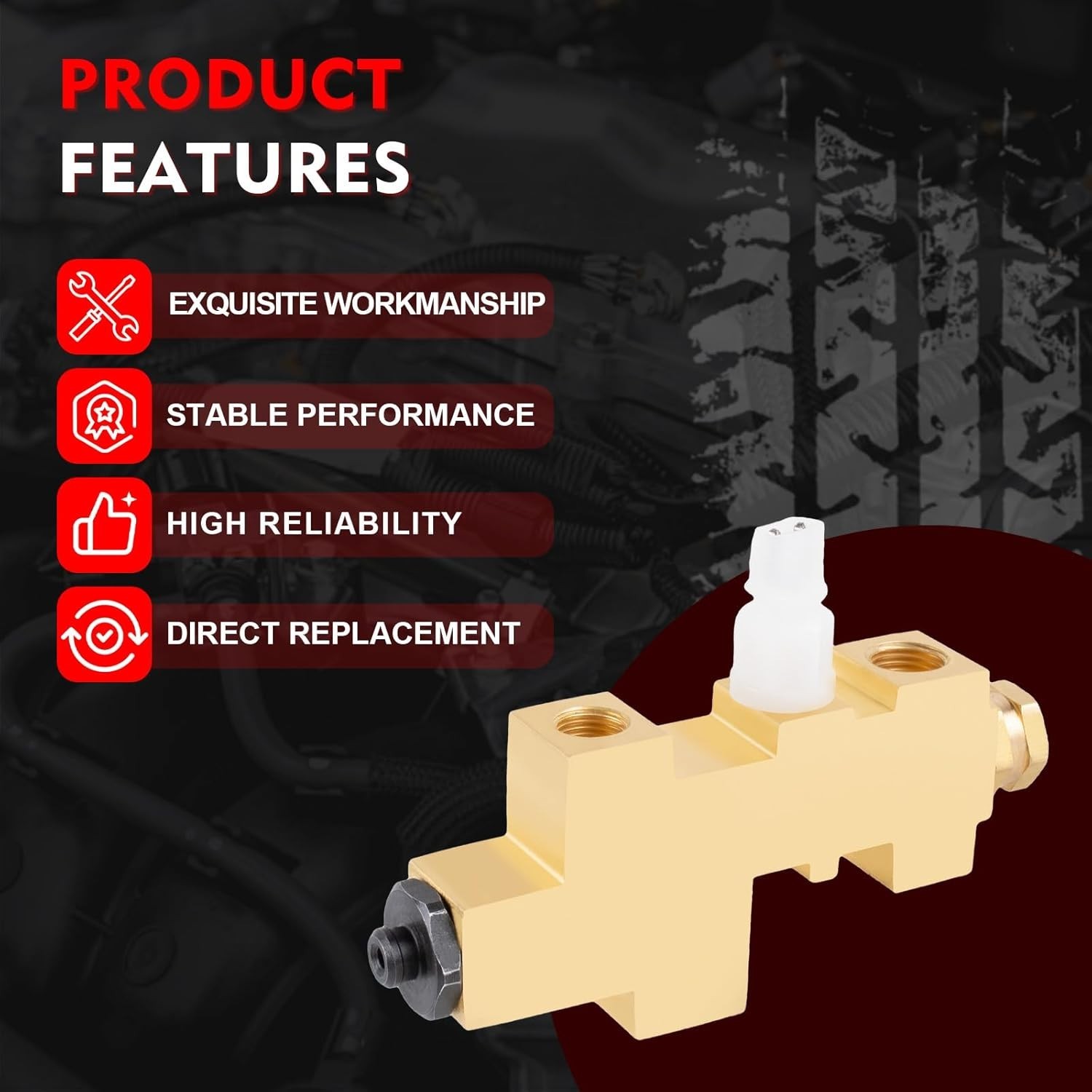 Replaces OEM Part Number: The Brake Proportioning Valve Replaces PV8796J, 5083808AA, 52009115, 05083808AA, W0133-1680908-MPR, 52009365 Compatible Models: This PV8796J Brake Proportioning Valve Compatible with Jeep Wrangler CJ XJ YJ 2.4L 2.5L 4.0L 1994-1995, 1997-2006; Compatible with Jeep Cherokee 2.5L 4.0L 1987-1996; Compatible with Grand Cherokee 4.0L 5.2L 1994-1996 Premium Material: The brake proportioning valve made of rugged brass material, wear-resistant and corrosion-resistant, can withstand extreme working conditions and ensure the stability and safety of the braking system. It is thoroughly tested to ensure performance and lasting quality Precision Brake Control: Brake proportioning valve is designed to optimize the distribution of brake fluid, provide better braking performance and responsiveness, while helping to prevent brake lock-up and issue warnings when the system fails, enhancing the vehicle's handling and safety Buy with Confidence: Please check your OE number and car model before purchase the PV8796J Brake Proportioning Valve. If you have any question, please let us know. We will provide you with timely service and support