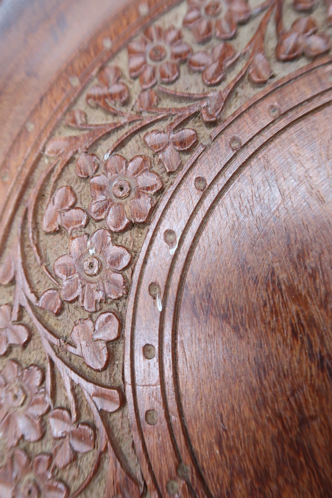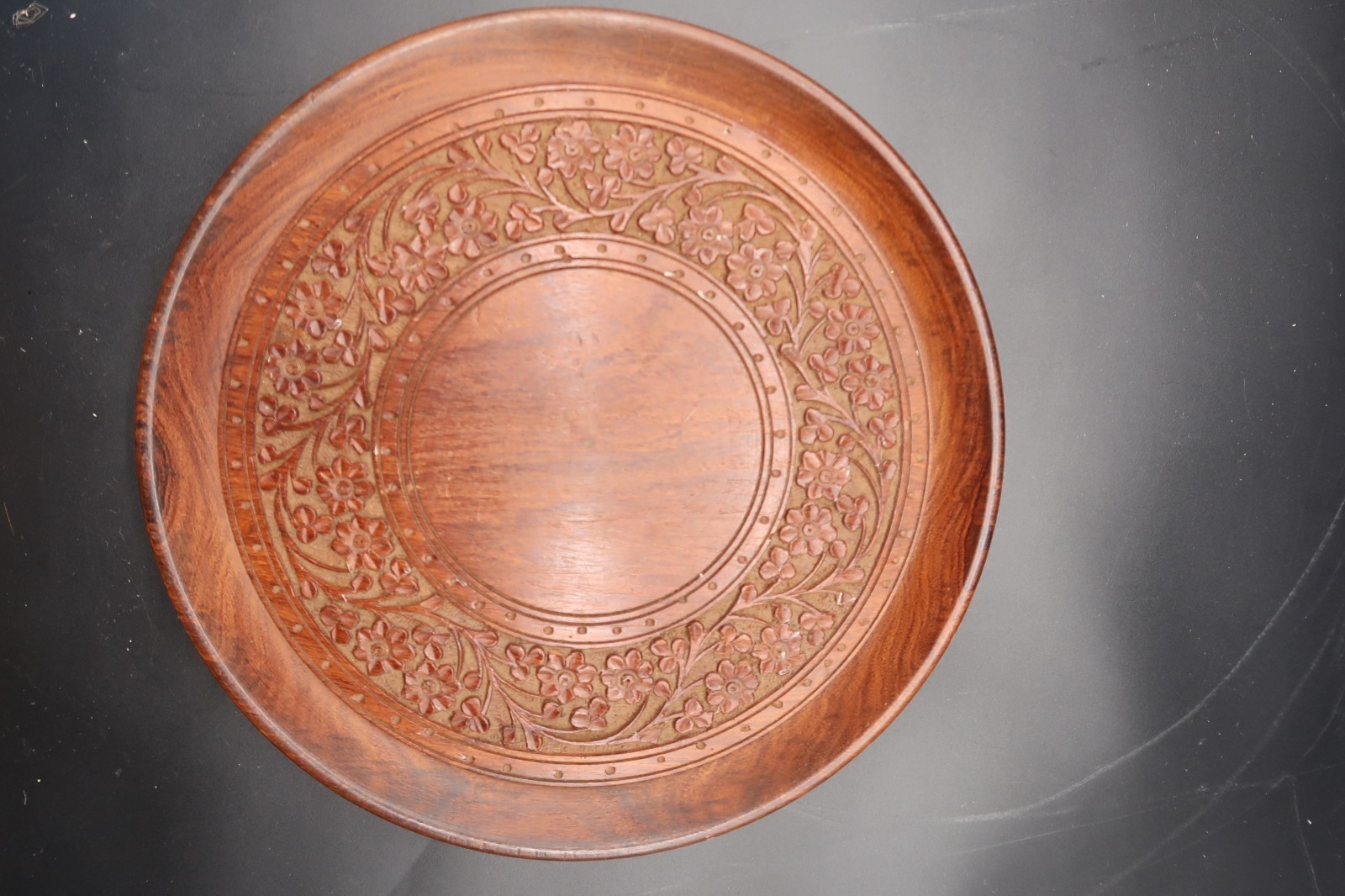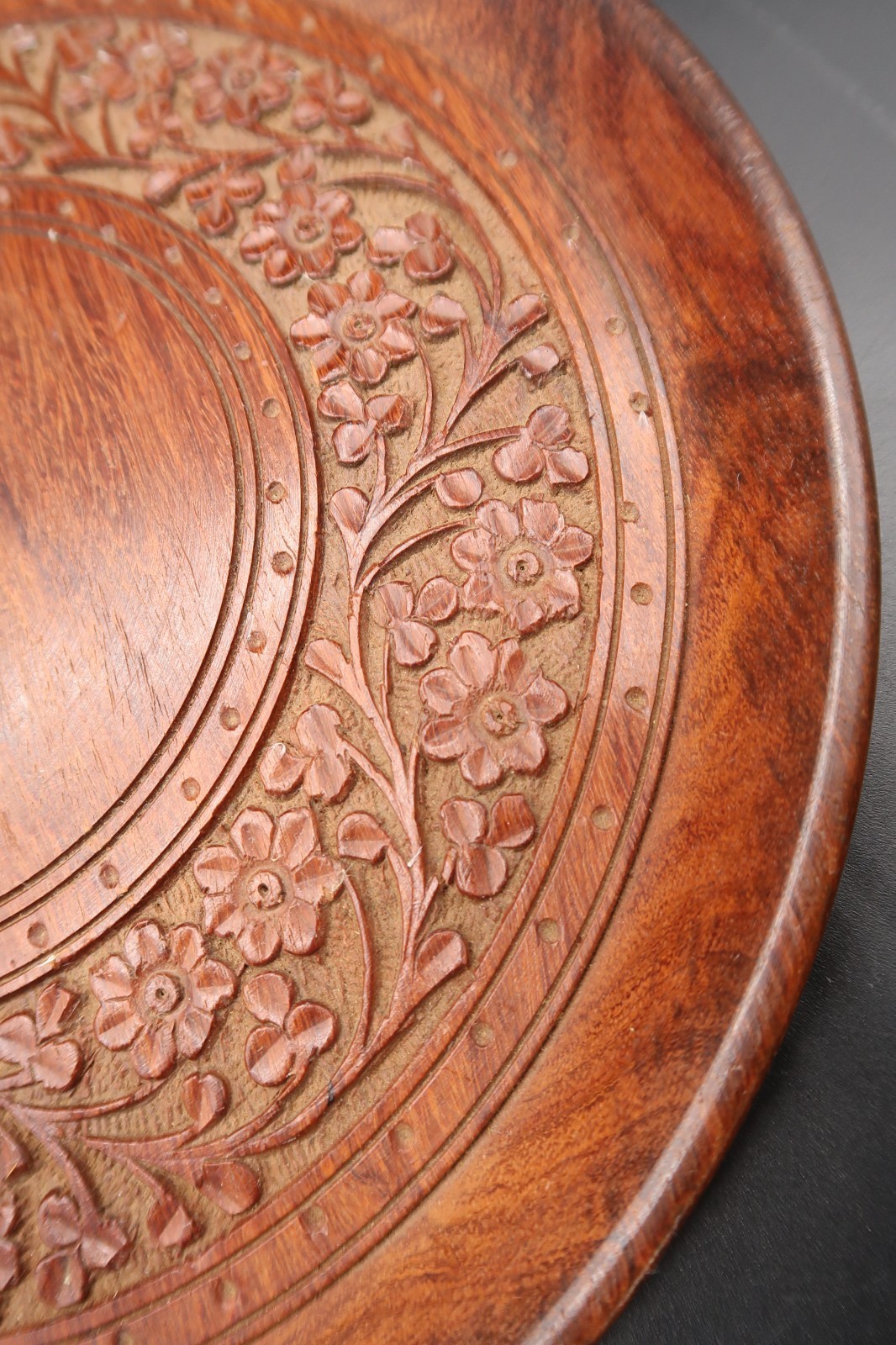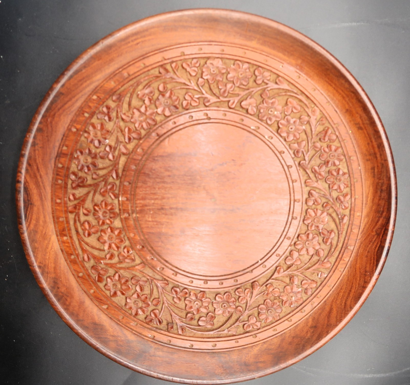 Vintage Hand Carved Wooden Serving Plate / Tray Intricate Floral Pattern