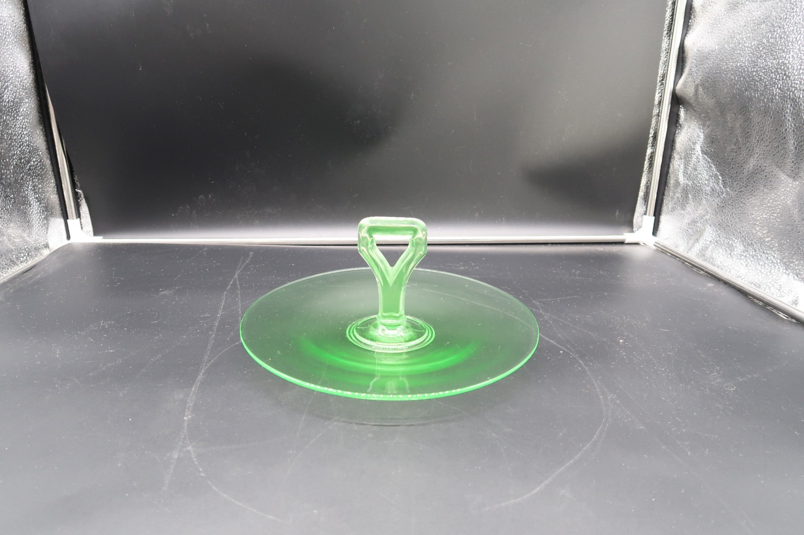 Vtg 10" Green Uranium Depression Glass Dish Hors d'oeuvres Appetizer Halloween