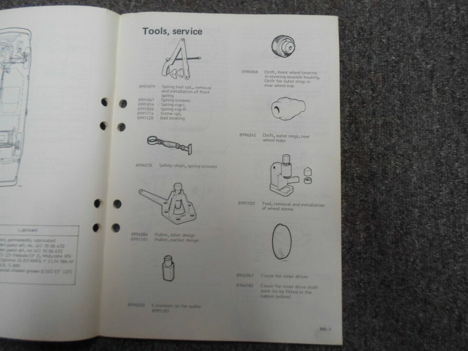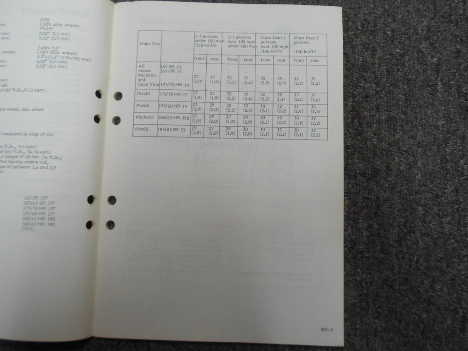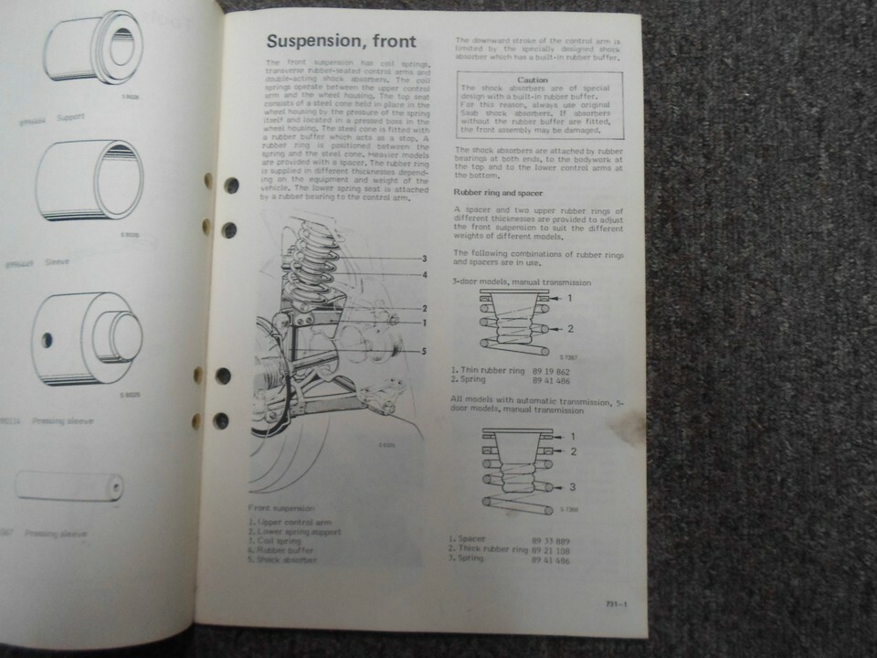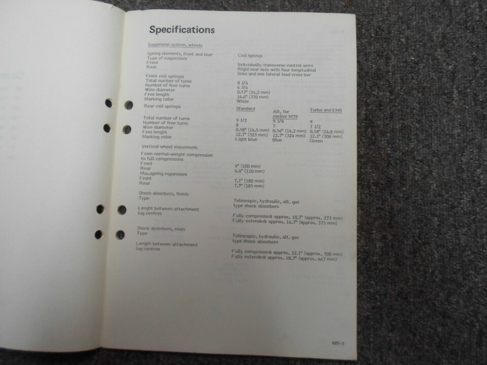 1979-1981 Saab 900 Specifications 0 Service Manual contains WATER DAMAGE on the top right corner of the service manual, does not affect legibility of the manual and it's still in good condition. This set is INCOMPLETE.