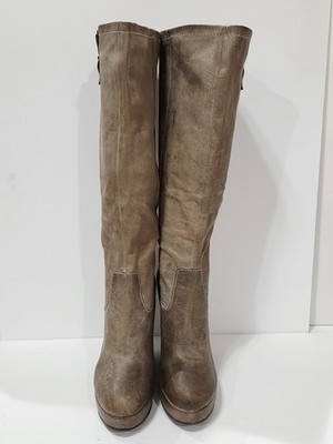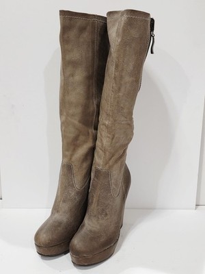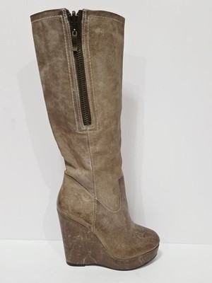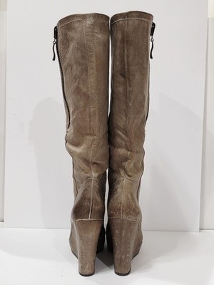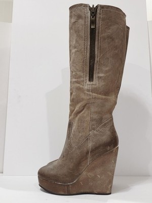 Steven BRIXF103 Taupe Brown Leather Wedge Boot Zipper Knee High Chunky 6.5 M New