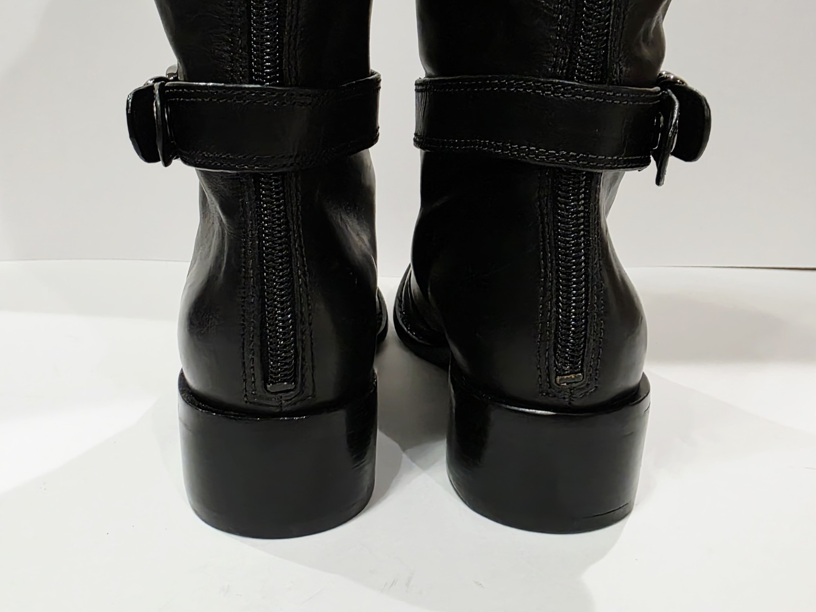 Via Spiga BLACK LEATHER Boot Charcoal Harness Knee High Zipper Riding 7 M New