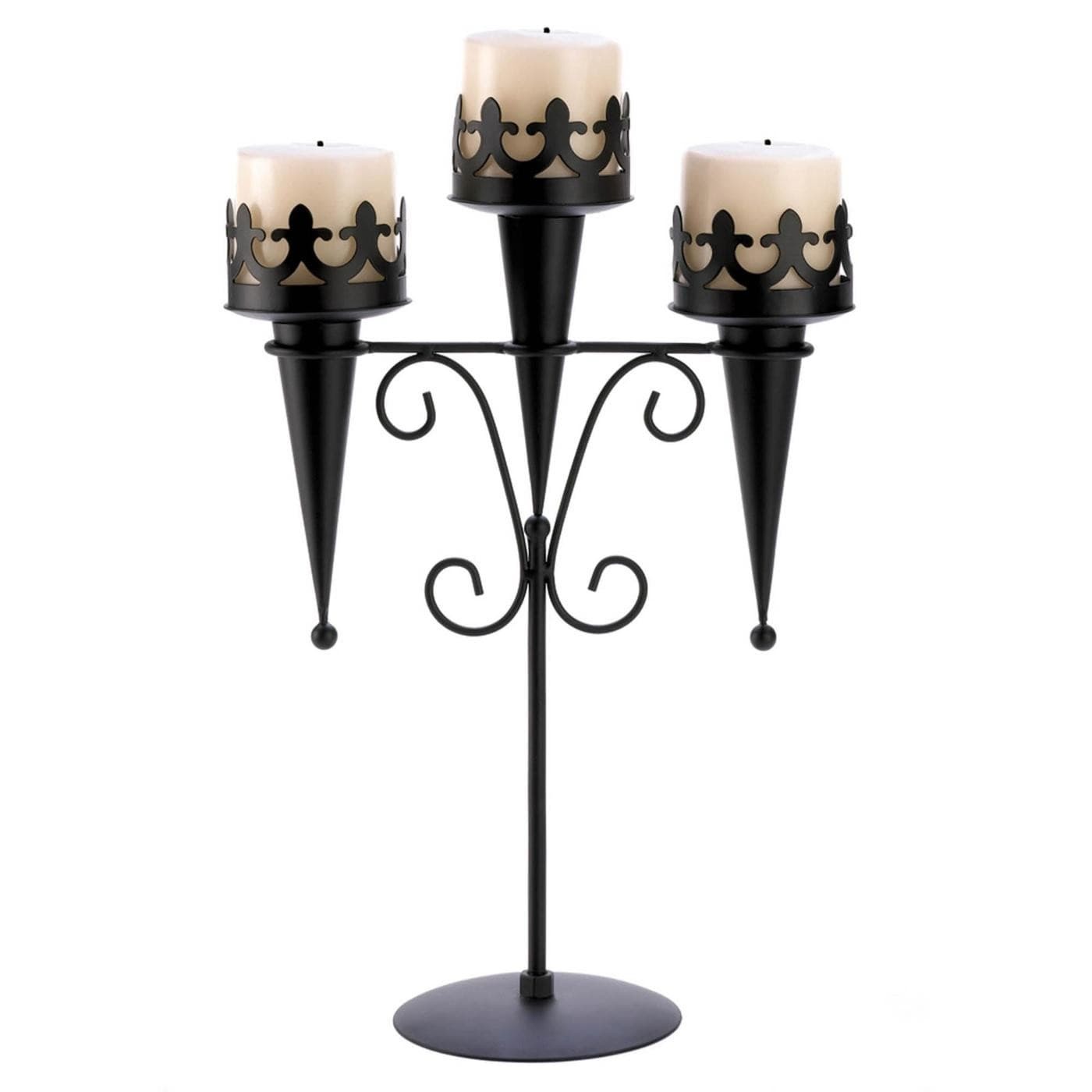 As a fascinating focus piece or a dramatic decor accent, this stately stand creates a lasting impression! Deep black finish accentuates every shapely detail and creates stunning contrast to a triple candle display.