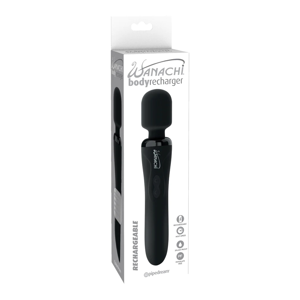 Enjoy soothing vibrations anywhere you go and give your aching muscles the revitalizing recharge they deserve! The Wanachi Body Recharger is the first Wanachi body massager with a velvety-soft head and neck made entirely out of Elite silicone and operated by a powerful rechargeable motor. With the splash-proof Wanachi Body Recharger, you can delight in knowing that youโll never have to replace another set of batteries again, and never worry about messy cords getting in the way of fun! With ten whisper-quiet vibration patterns to choose from, you can go from a flutter to a throb in seconds. Hold the power button down for three seconds to power on, then push the function button to cycle through 3 intense speeds and 7 thrilling pulsation patterns. The multiple functions let you choose your favorite setting to relieve tension and reduce muscle fatigue. Using a premium, lithium-powered Japanese motor, the Wanachi Body Recharger delivers, deep, rumbly vibrations unlike any other compact cordless massager on the market. This lightweight massager is ergonomically shaped for extra comfort and covered in body-safe, phthalate-free Elite silicone, making it incredibly smooth to the touch. The flexible silicone head and neck bends and conforms to your body contours, allowing you to hit the right spot every time. Whether youโre looking to relieve tension, reduce muscle fatigue, or enjoy a luxurious intimate encounter with or without a partner, this irresistable massager it the perfect choice. Overall Length: 9โ (23 cm) Head Width: 1.7โ (4.2 cm)
