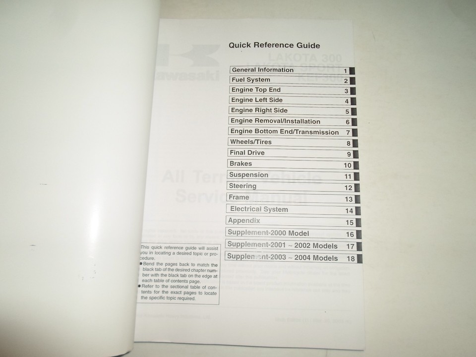 1995 1997 Kawasaki Lakota 300 Tutti Terrain Veicolo Servizio Repair Manual Tinto