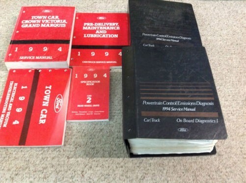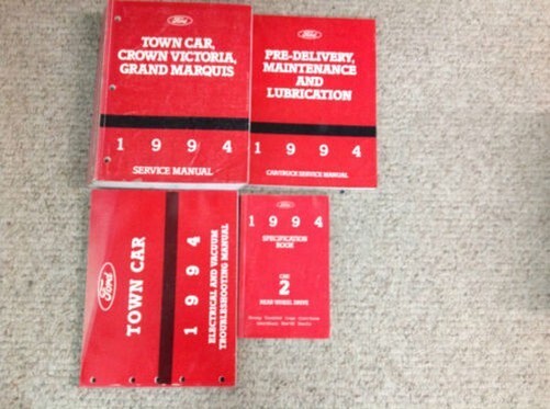 MANUEL D'ENTRETIEN DE L'USINE LINCOLN TOWN CAR 1994, MANUELS DE DIAGNOSTIC DES EMISSIONS DE CONTROLE DU GROUPE PROPULSEUR, MANUEL DE DEPANNAGE ELECTRIQUE ET A VIDE, MANUEL DE SPECIFICATIONS ET MANUEL D'ENTRETIEN ET DE LUBRIFICATION AVANT LIVRAISON.