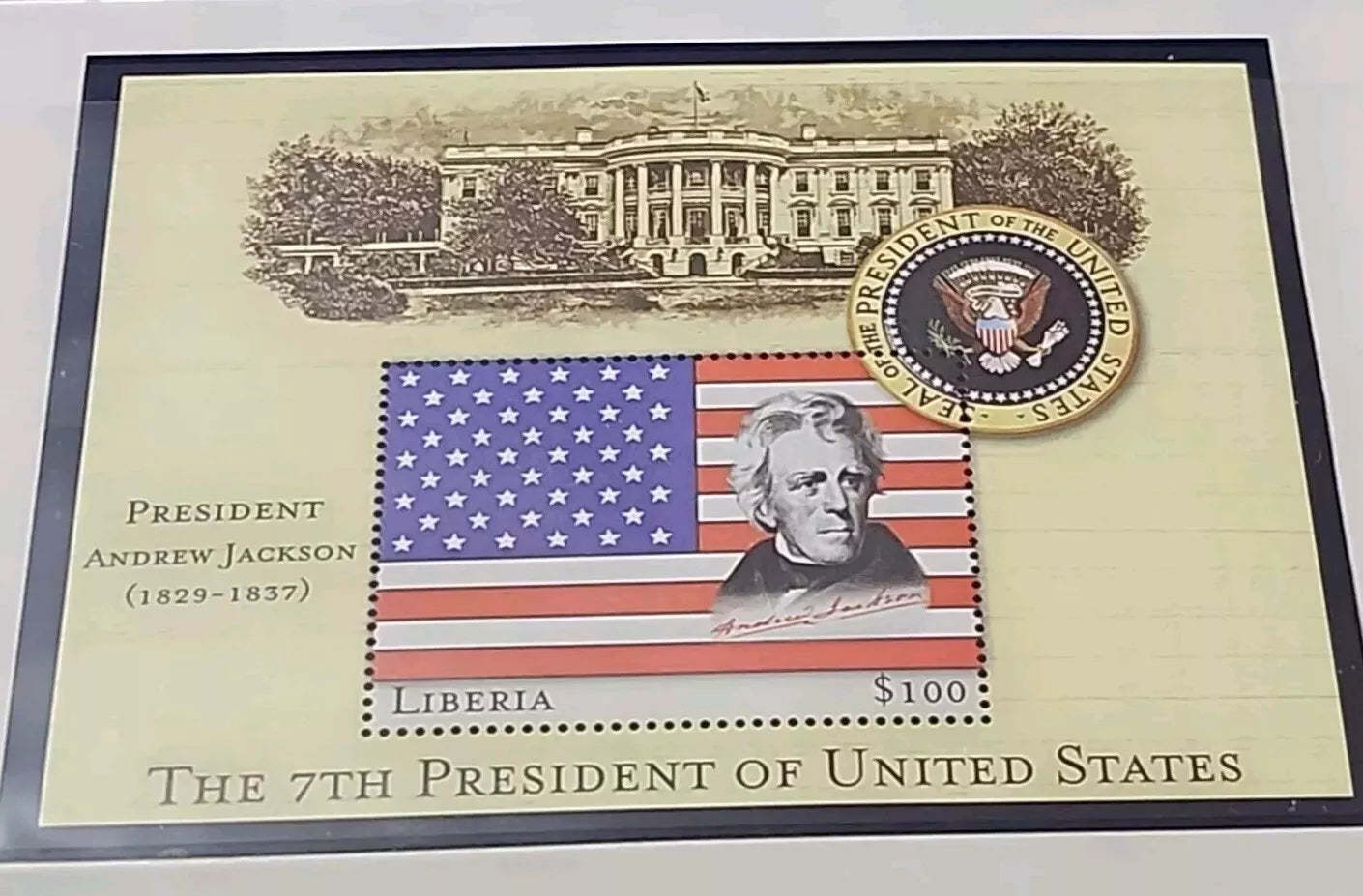 7th President Andrew Jackson $100 Stamp Liberia Mystic Stamp Company