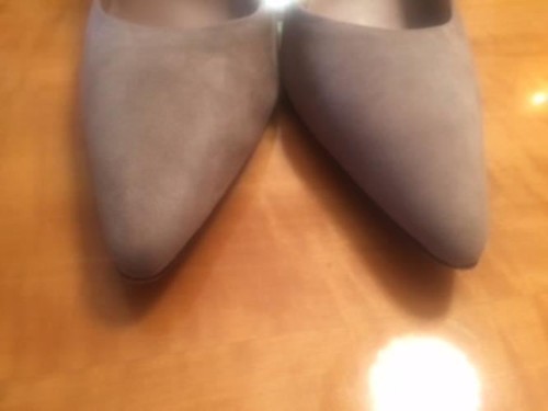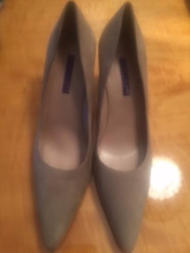 These pre-owned RALPH LAUREN tan suede pumps are in very good condition with no signs of damage of any kind but there is a tiny red mark on the side of one shoe (as seen in the photo). This is hardly perceptible to the naked eye and does not take away from the beauty of these shoes.