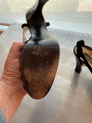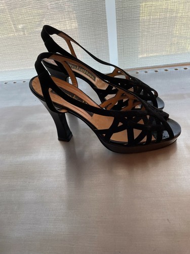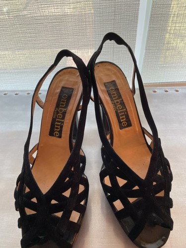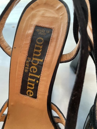 Pre-owned OMBELINE Paris Black Suede Sandal SZ 6 Made in Italy