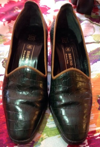 Authentic Bruno Magli Forest Green Croc Stamped Leather w/ Tan Suede Trim SZ 35