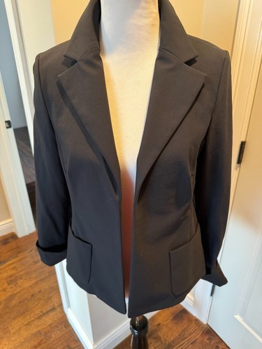 Nina Mclemore Black Neoprene Fabric Shaped Jacket SZ 8
