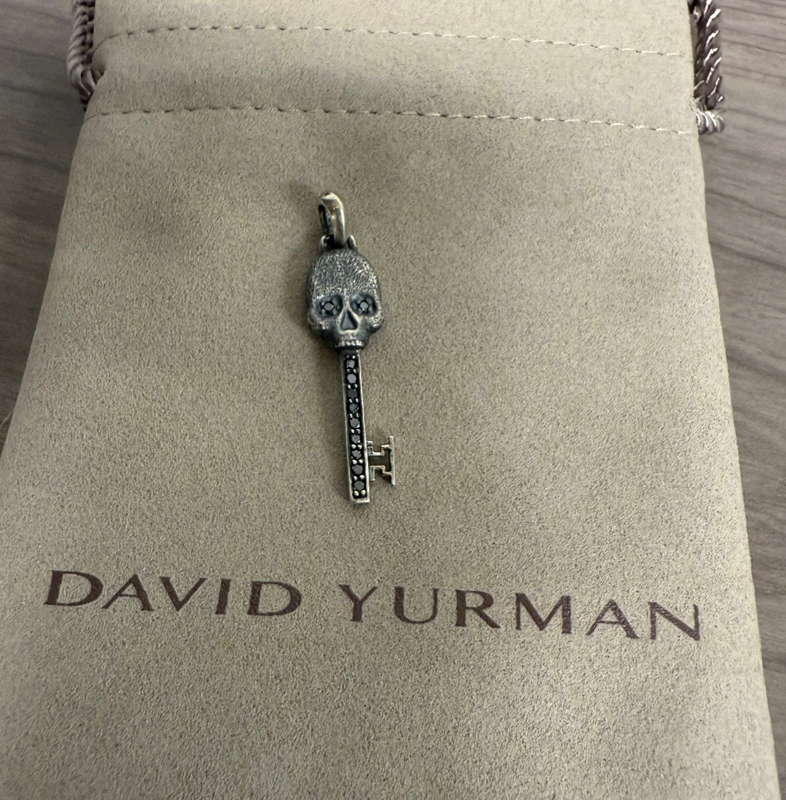 David Yurman Memento Skull Key Amulet .925 Sterling Silver with Black Diamond